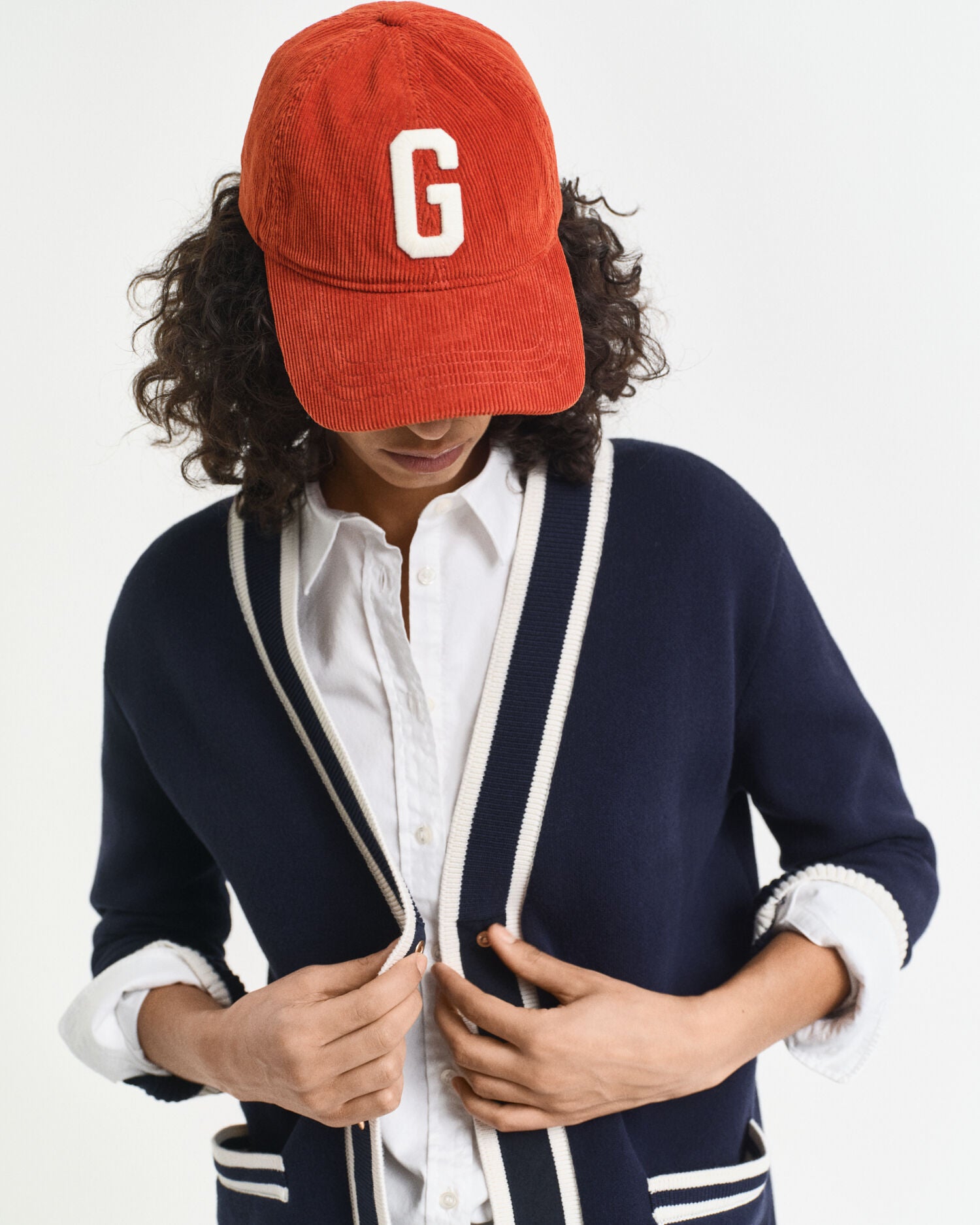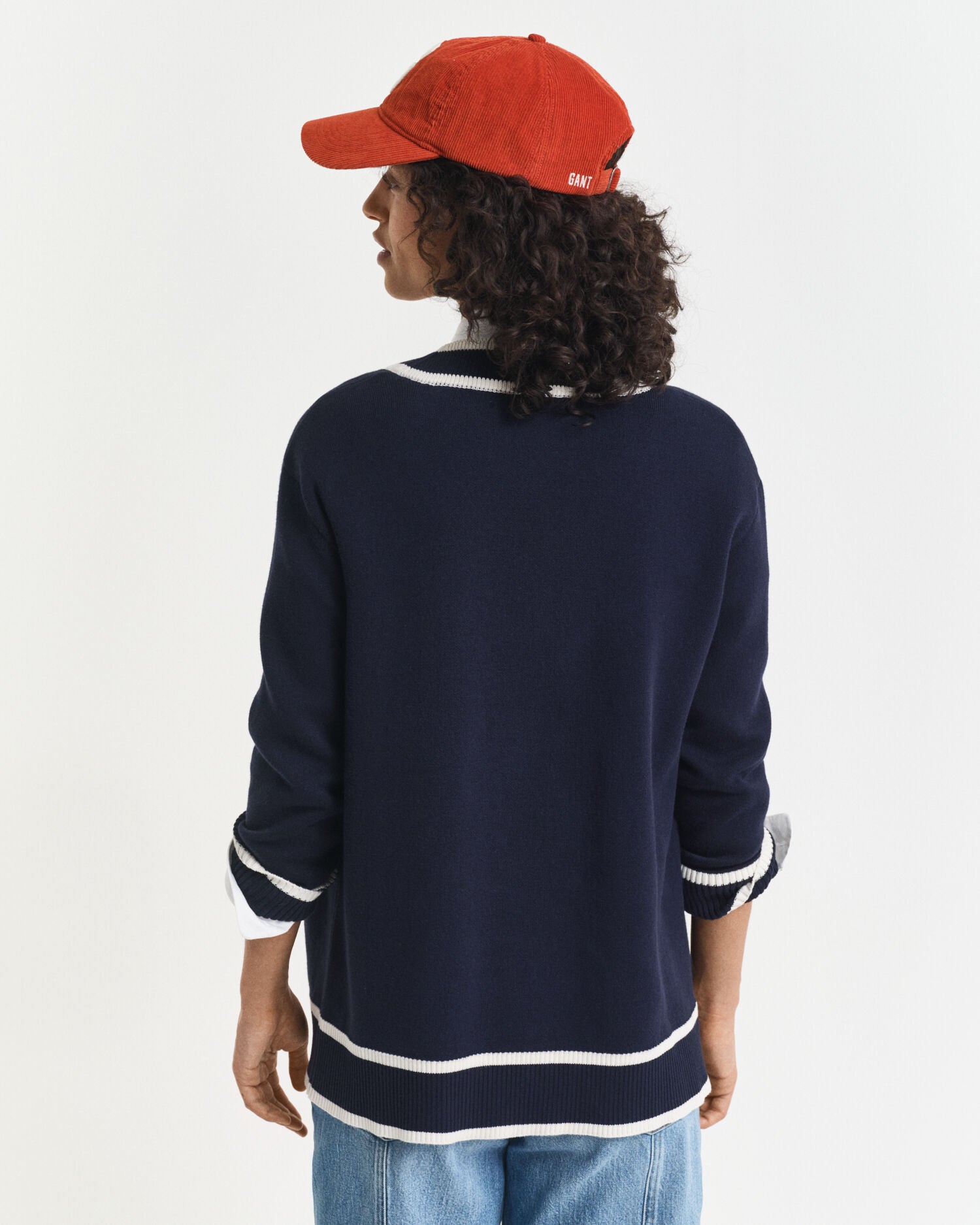 Fashioned from soft organic cotton, this cardigan is designed with a relaxed fit and V-neckline. Featuring a jersey knit structure at the body and sleeves, the design includes contrast tipping at the placket, ribbing at the hem and sleeve cuffs and a gold-toned shield buttons at the front. This garment is intended for a relaxed fit. For a closer fit, we recommend sizing down.