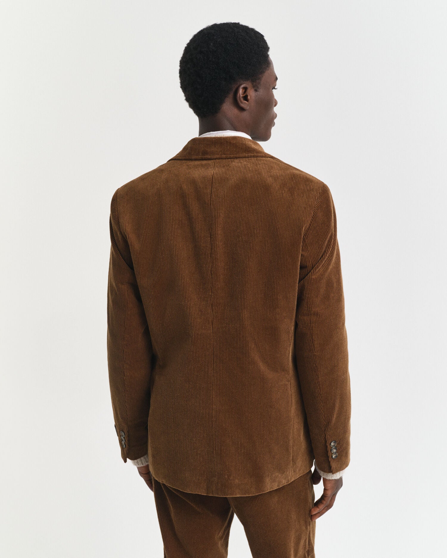 This blazer is tailored from plush, 8-wale cotton-corduroy in a versatile winter shade. It's cut for an easy, regular fit with a single-breasted silouhette and a 2-button closure. Fully lined, this blazer features a notch collar and lapels, felt under the collar, a chest welt pocket, lower patch pockets and three interior pockets. It's also detailed with back vents, branded imitation horn buttons and a removable description label at the sleeve.