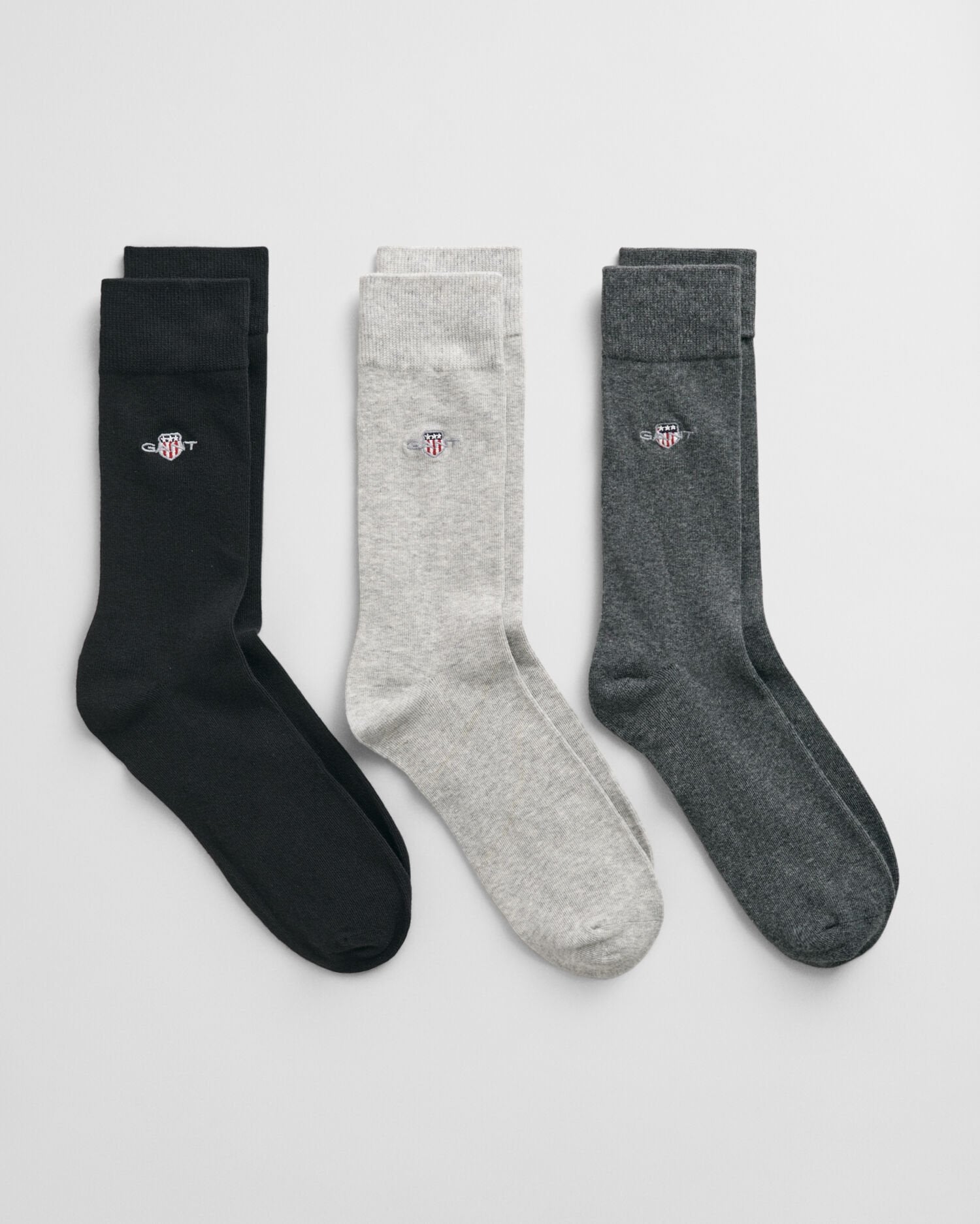 A 3-pack of classic, solid socks crafted out of soft combed cotton. The socks are designed with a mid-calf height and feature a small-scale shield graphic embroidered at the ankle.
