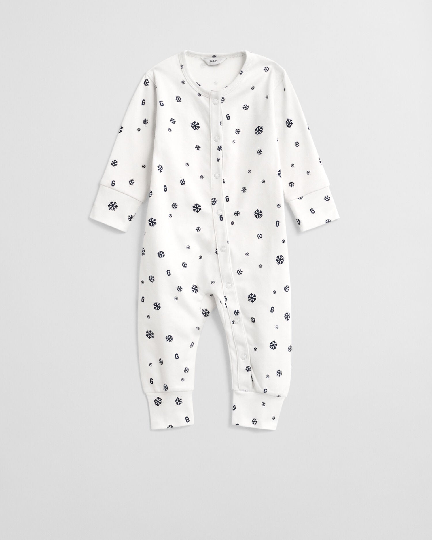 Patterned with a seasonal snowflake and G-lettered print, these comfortable pajamas are perfect for your babies every day. Crafted from 100% organic cotton for a super soft feel, they are cut for a regular, unisex fit with long sleeves and a crew neck. They fasten with snap buttons from the front neck down to the leg for easy on-and-off dressing.