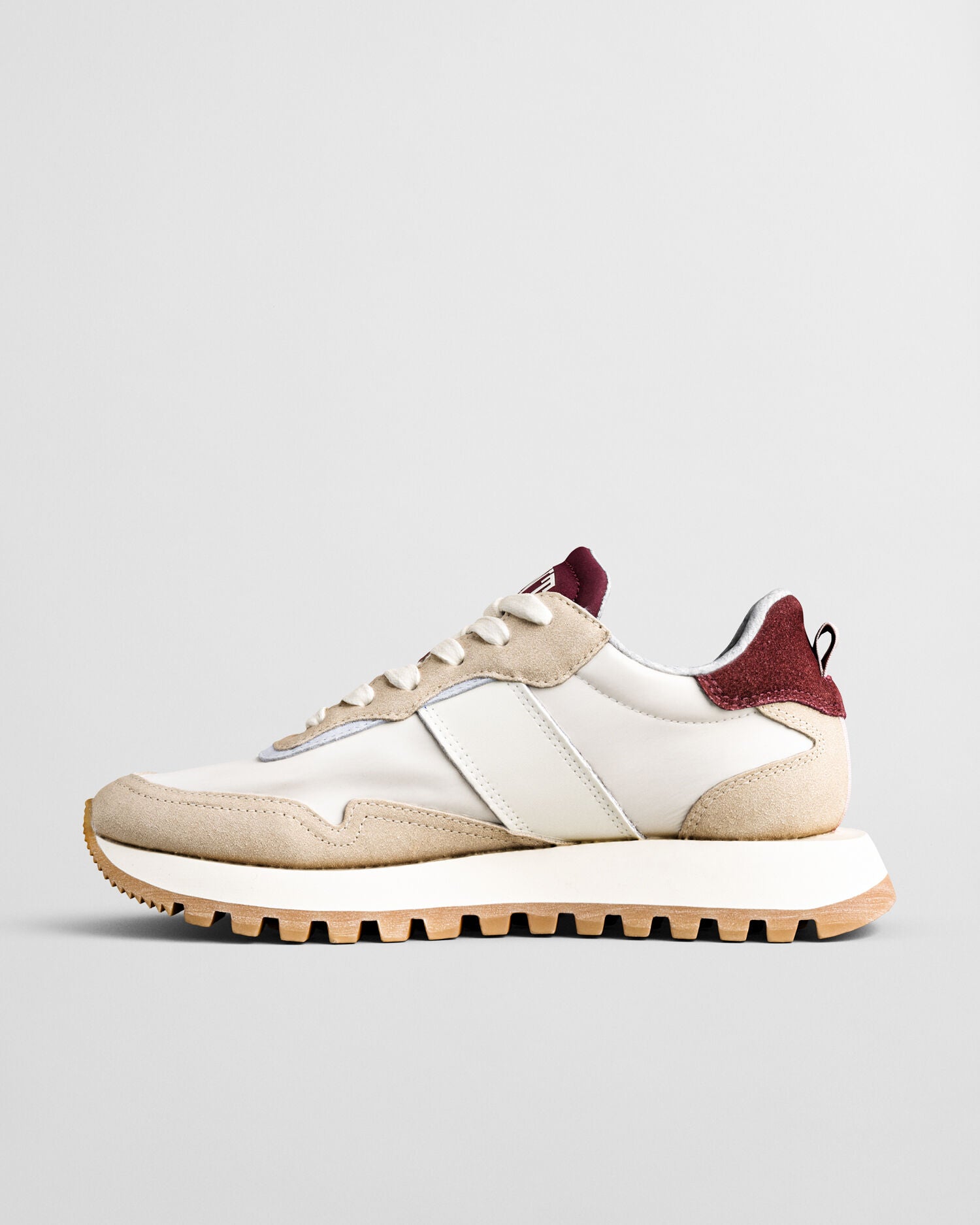 The Caffay Sneaker is a revived, retro take on the classic runner. Designed with a heavy-profiled outsole, the sneaker is crafted from premium cow suede and nylon in a fun colorblock design.