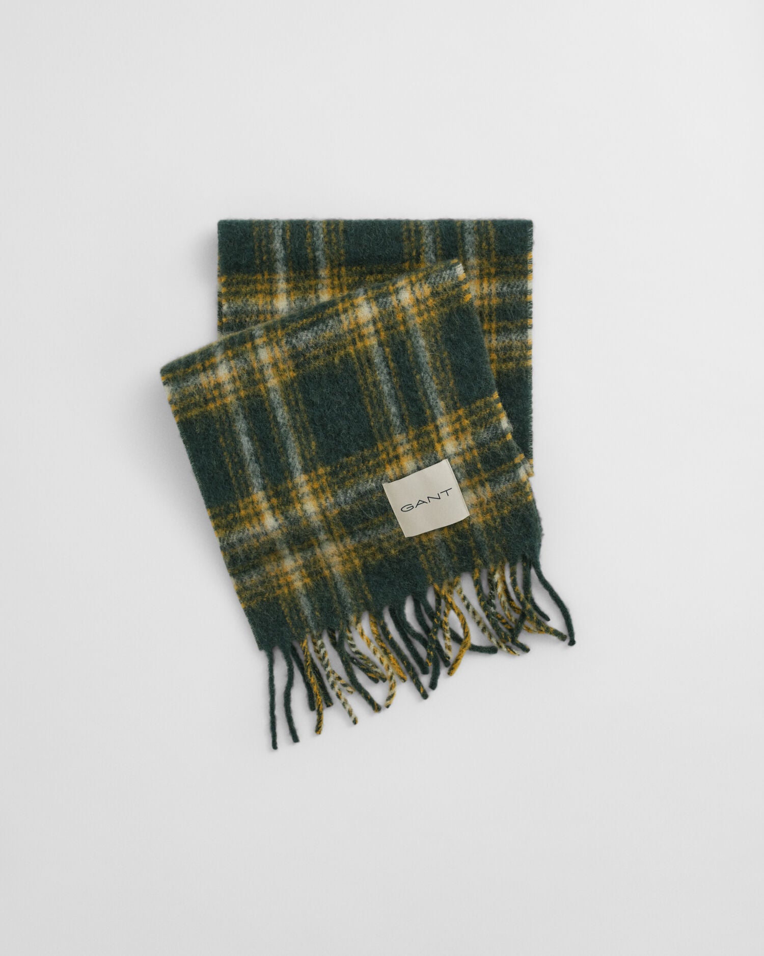 Crafted in a fluffy mohair and alpaca wool blend, this scarf brings a touch of color and pattern to your outfit with its checked design. A cozy winter essential, it is detailed with fringed edges and a label at the bottom corner.