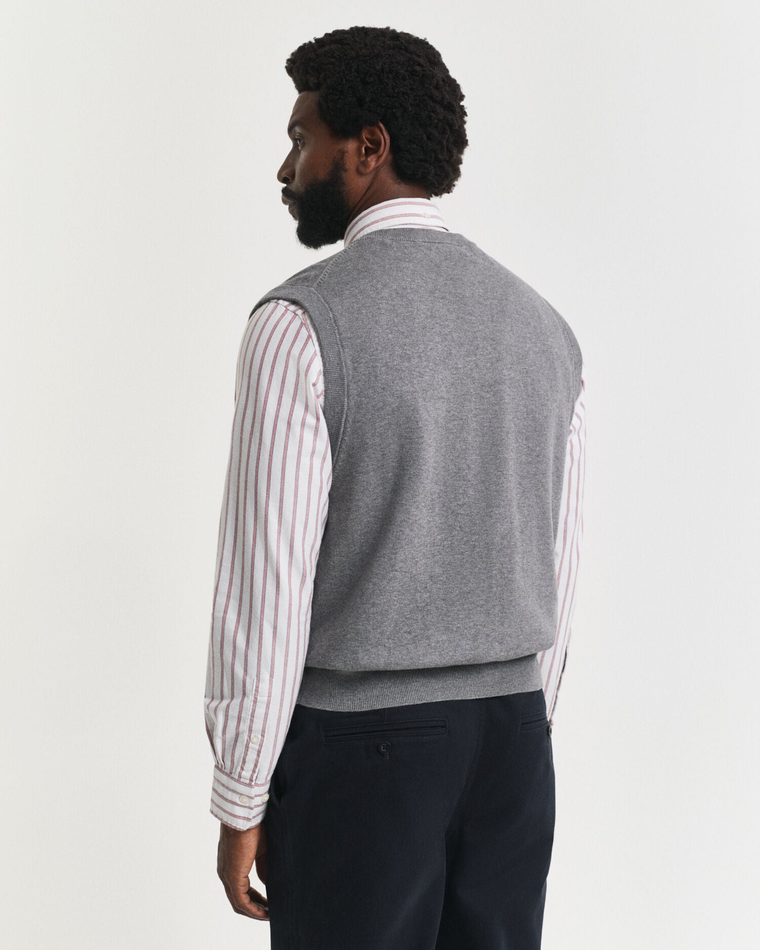 Crafted from cotton in a regular fit, this sleeveless vest is versatile, classic and suave. It features details like ribbed endings at the hem, a classic V-neck and a small shield graphic embroidered at the chest.