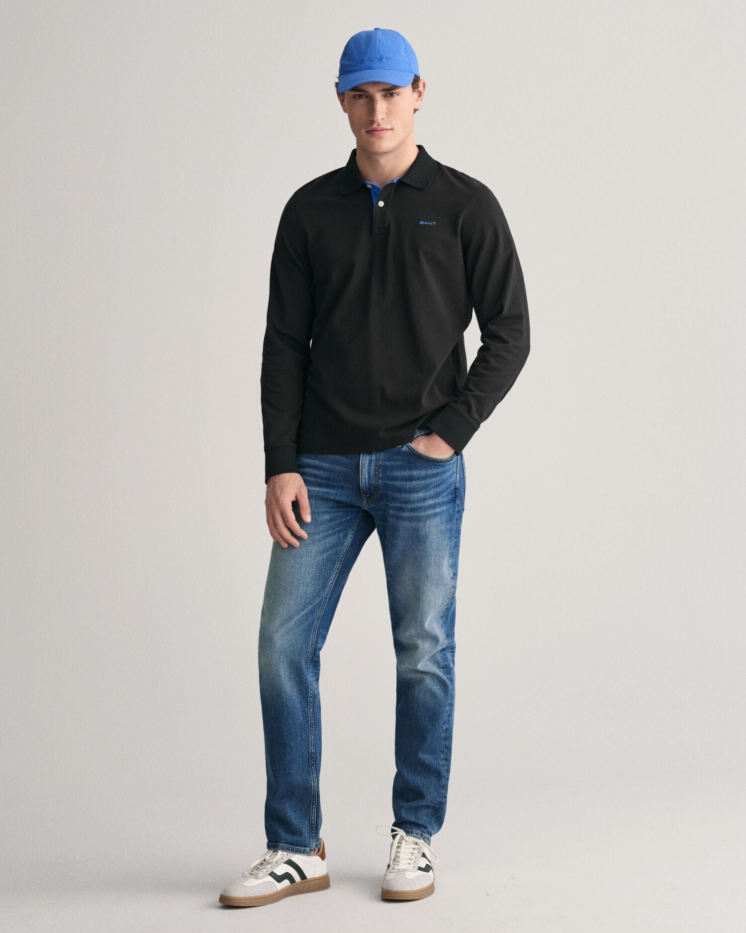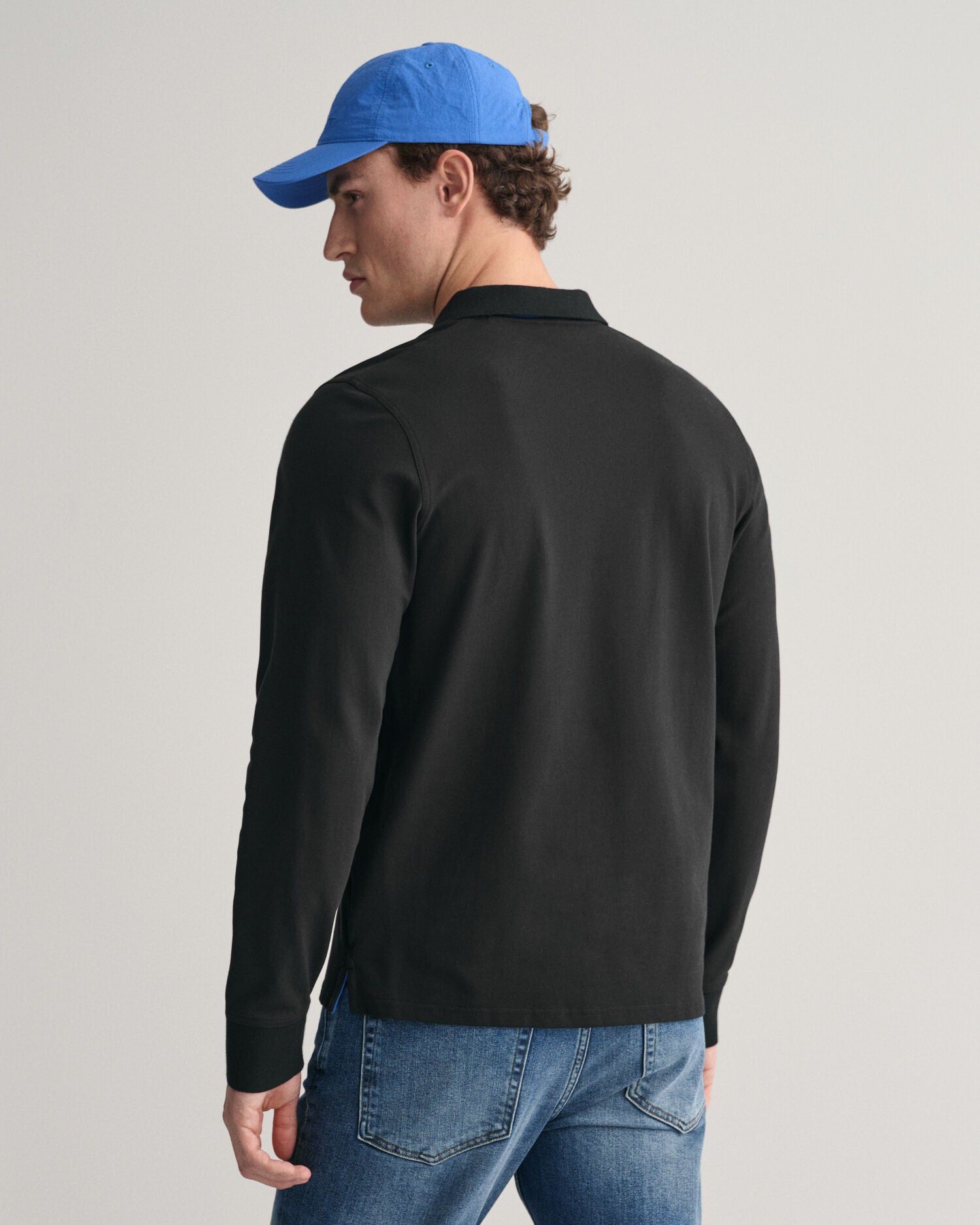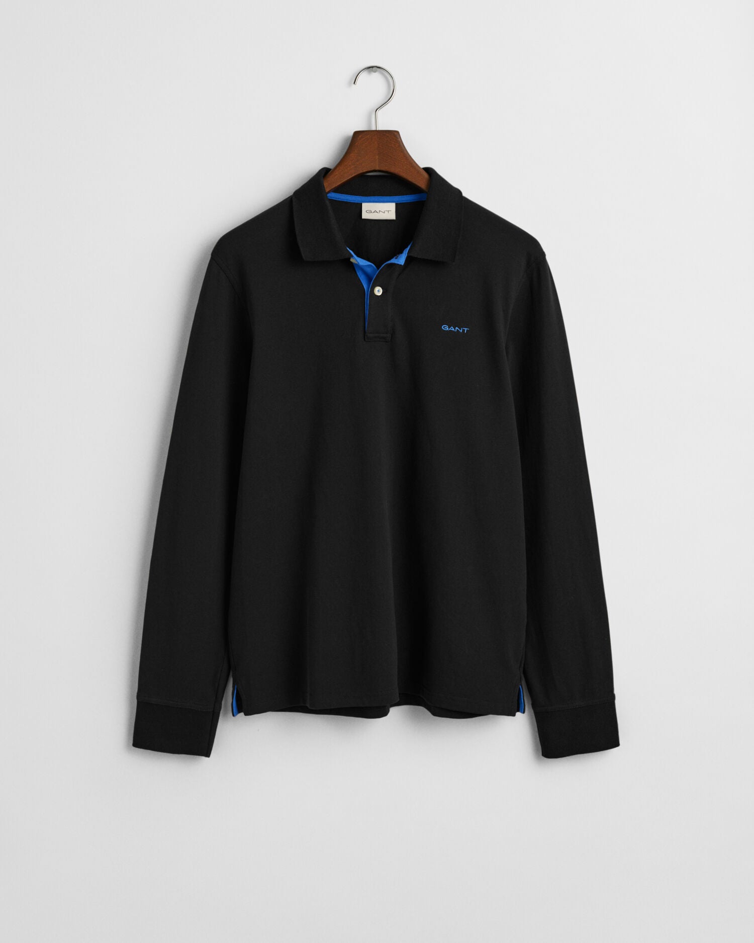 Crafted in cotton with a hint of stretch, this long-sleeved pique rugger features contrast color detailing under the placket, collar and cuffs. A timeless, versatile piece, it is accented with a logo embroidered at the chest. Dress it up with tailored pants and a lace-up shoe or with jeans and sneakers alike.