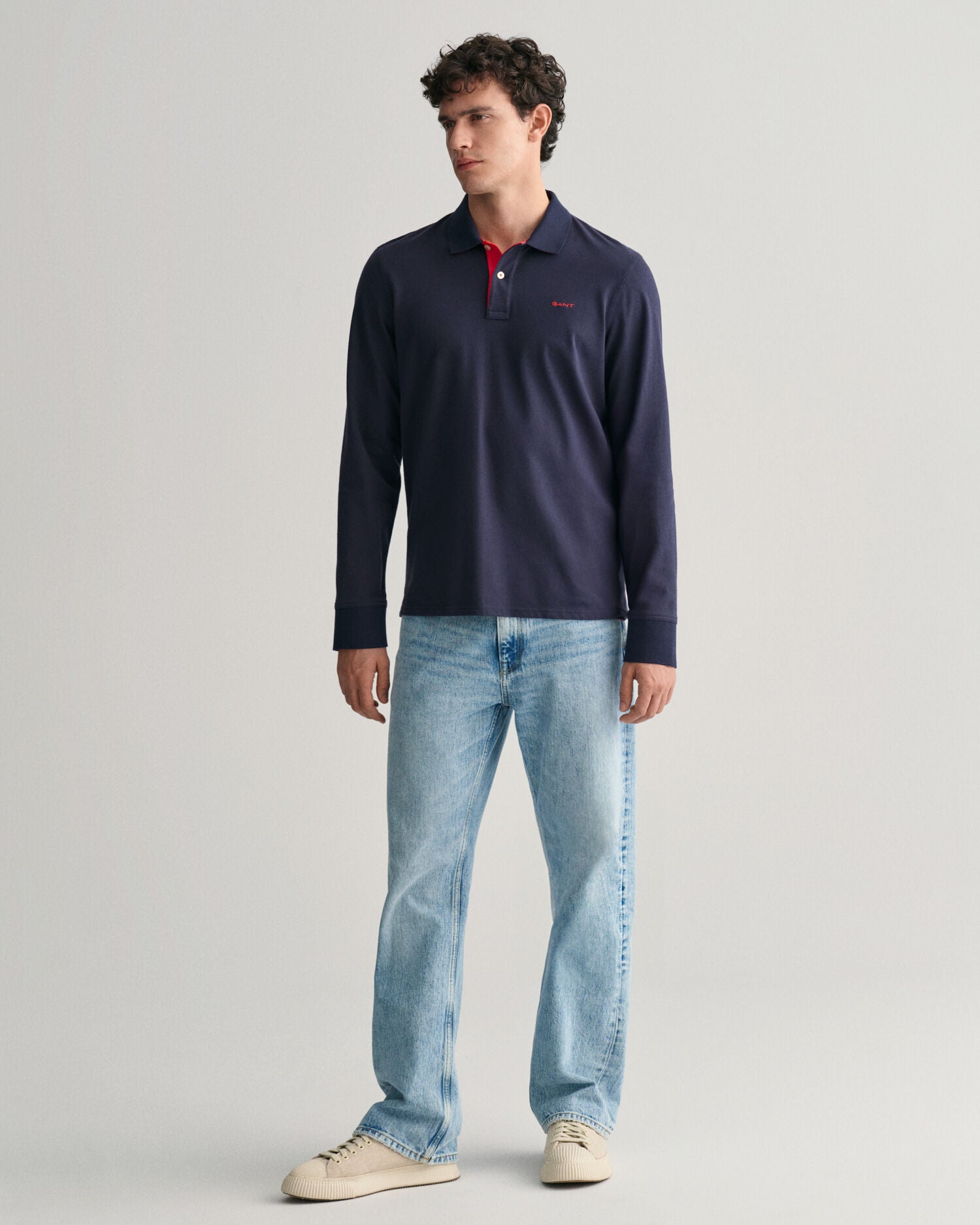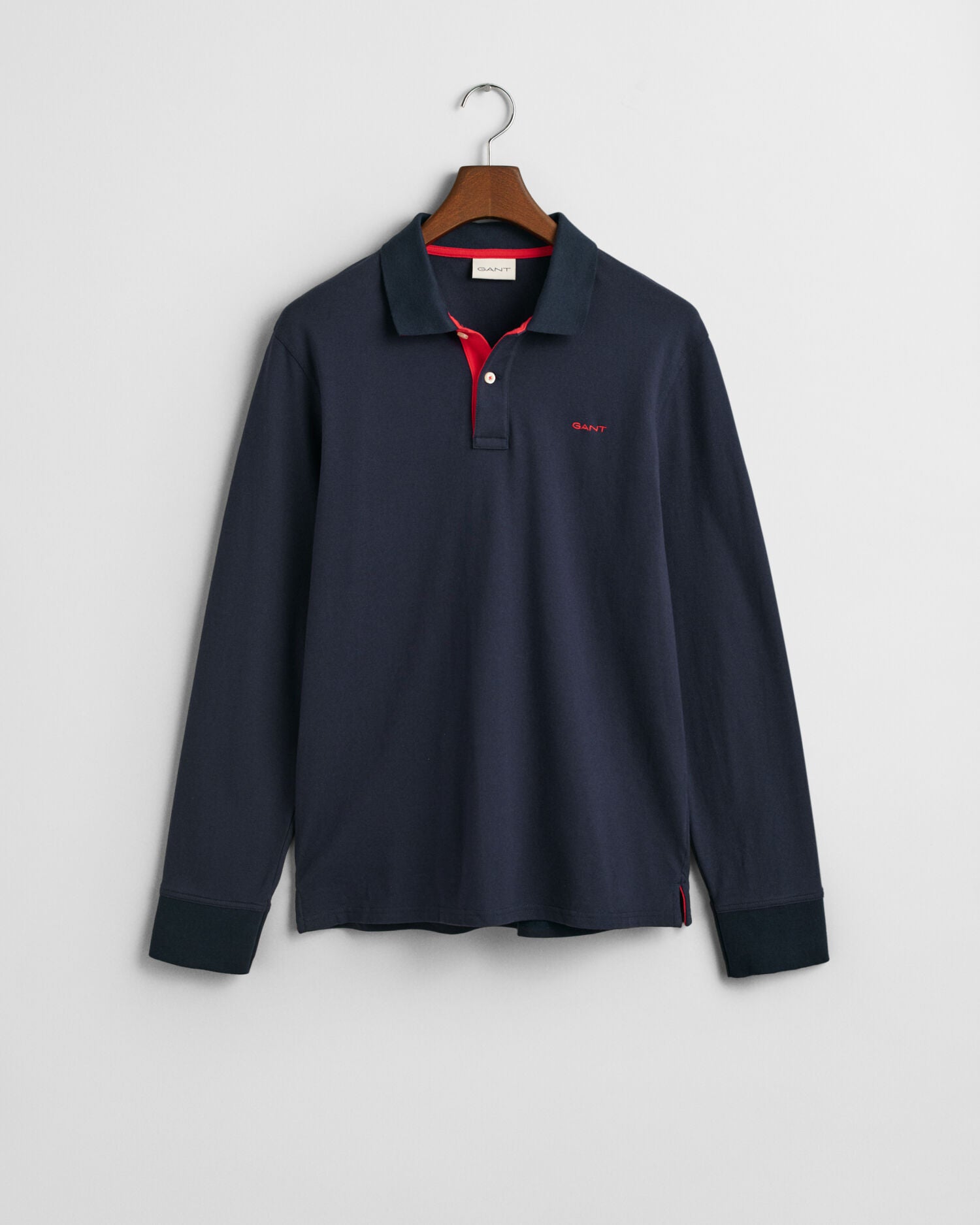 Crafted in cotton with a hint of stretch, this long-sleeved pique rugger features contrast color detailing under the placket, collar and cuffs. A timeless, versatile piece, it is accented with a logo embroidered at the chest. Dress it up with tailored pants and a lace-up shoe or with jeans and sneakers alike.