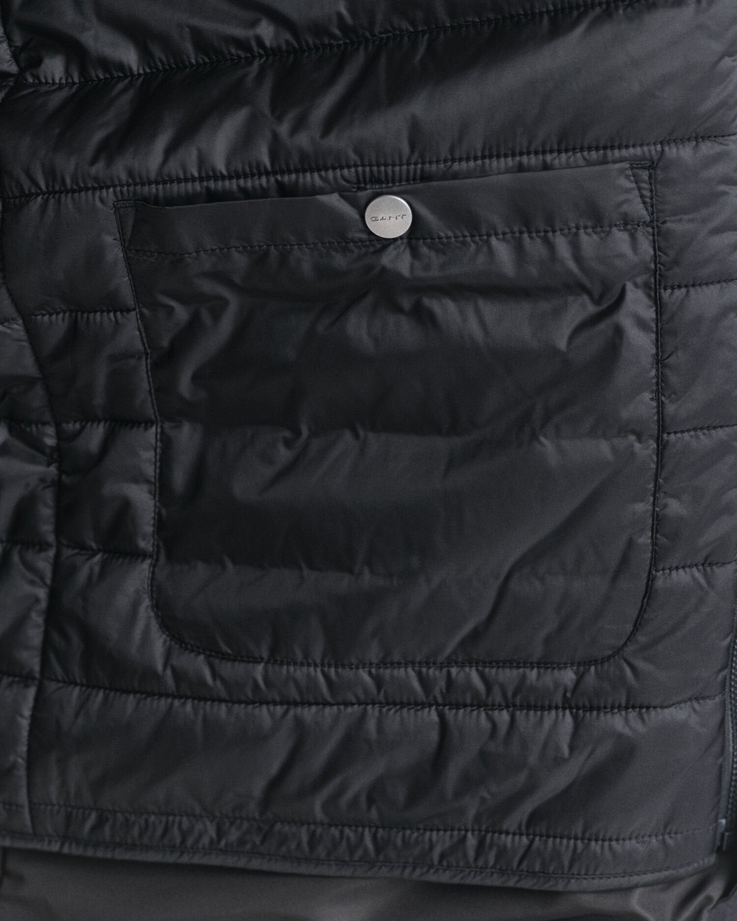 This mid-length jacket is an essential for the winter season. The padded silhouette features a double-decker design with zip closure covered by the placket, a stand collar and an emergency hood. Designed for a regular fit, the design is further detailed with a zip pocket at the chest, lower patch pockets and a rubber badge at the sleeve. Comfortable and versatile, the interior is fully lined and features a detachable vest and two additional pockets.
