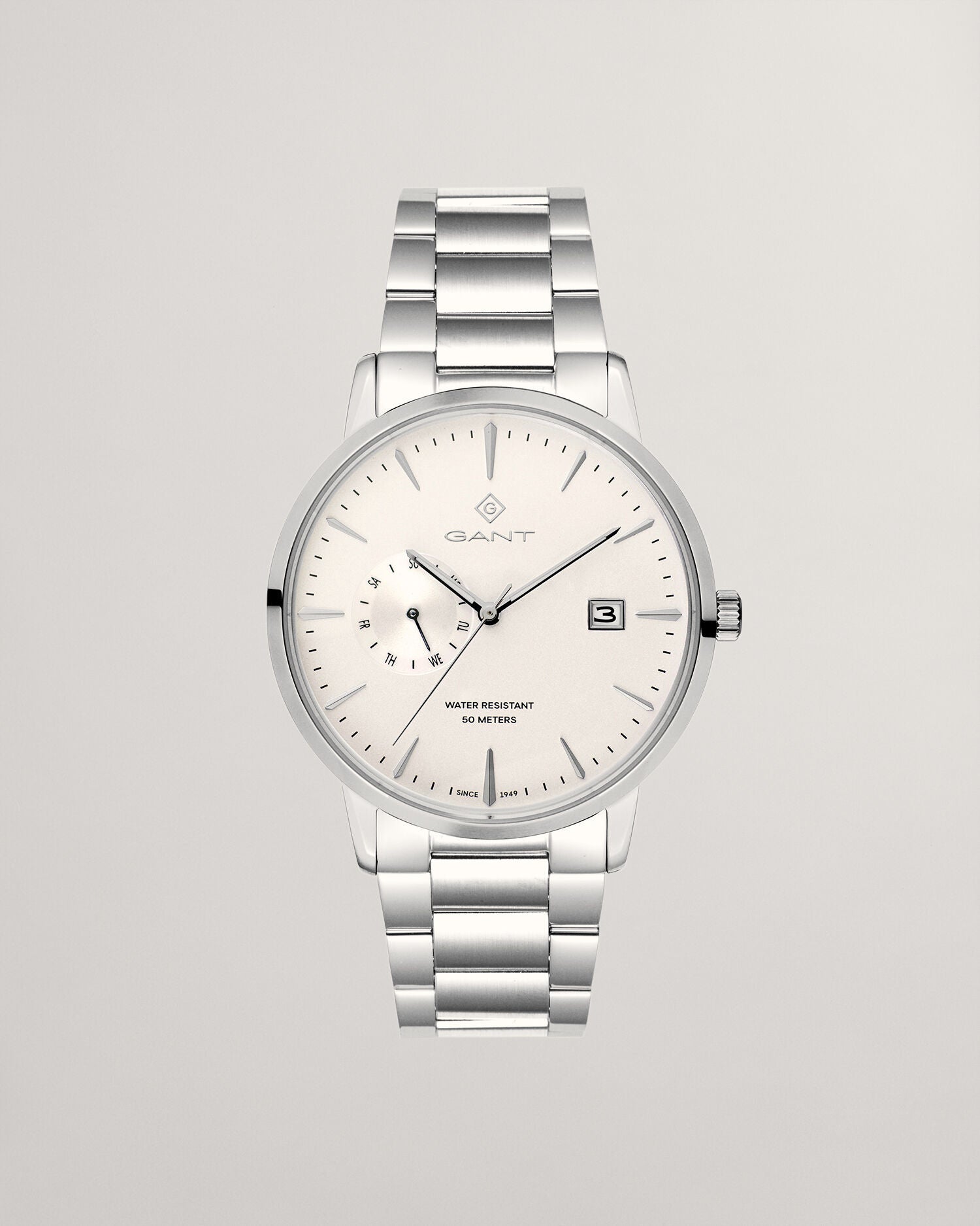 Sporty and classic, our men's time collection combines innovation with superior craftsmanship to create keepsakes inspired by our Never Stop Learning credo. The East Hill Wristwatch is made from mineral glass and stainless steel, and features three hands, a circular day and a date function.