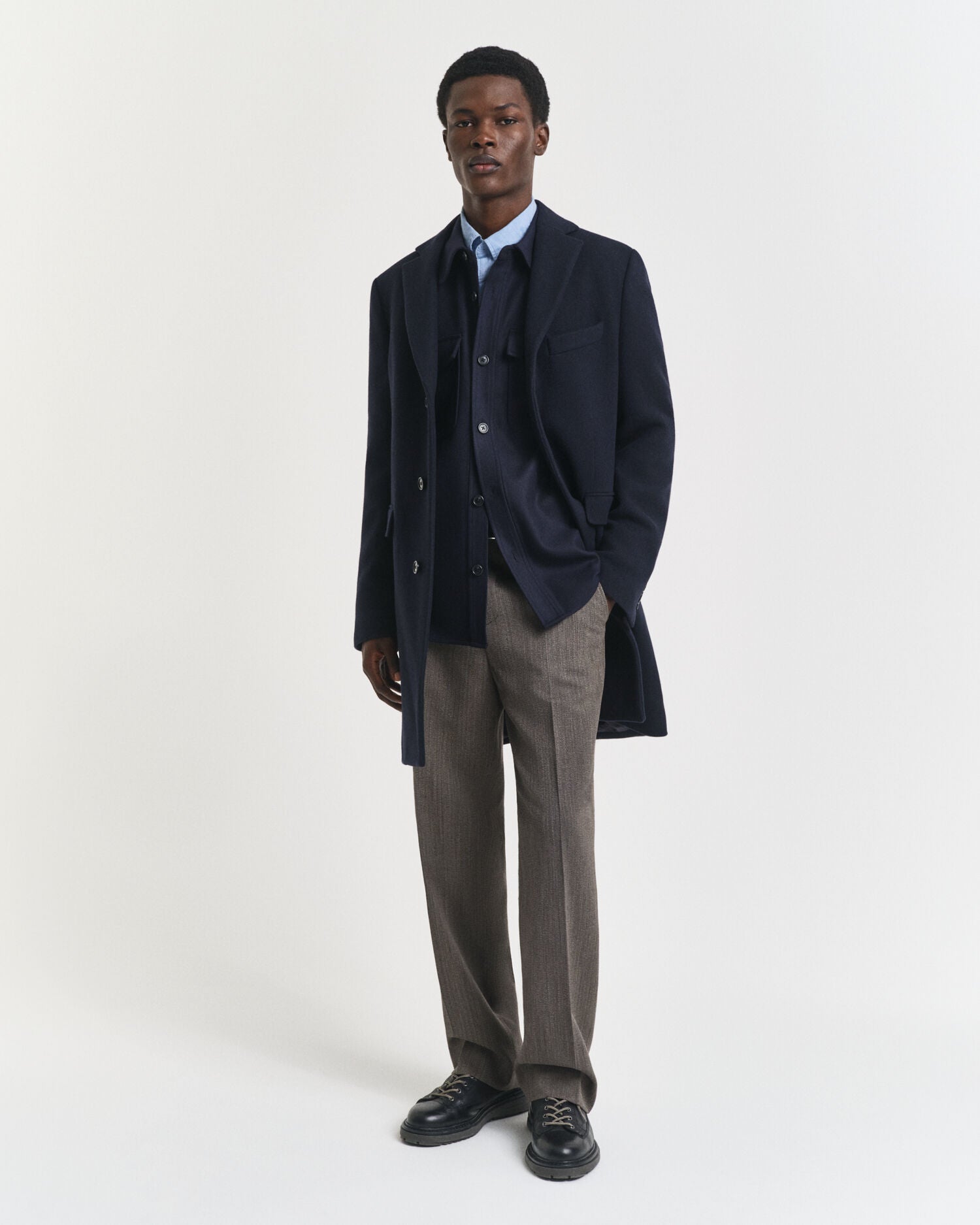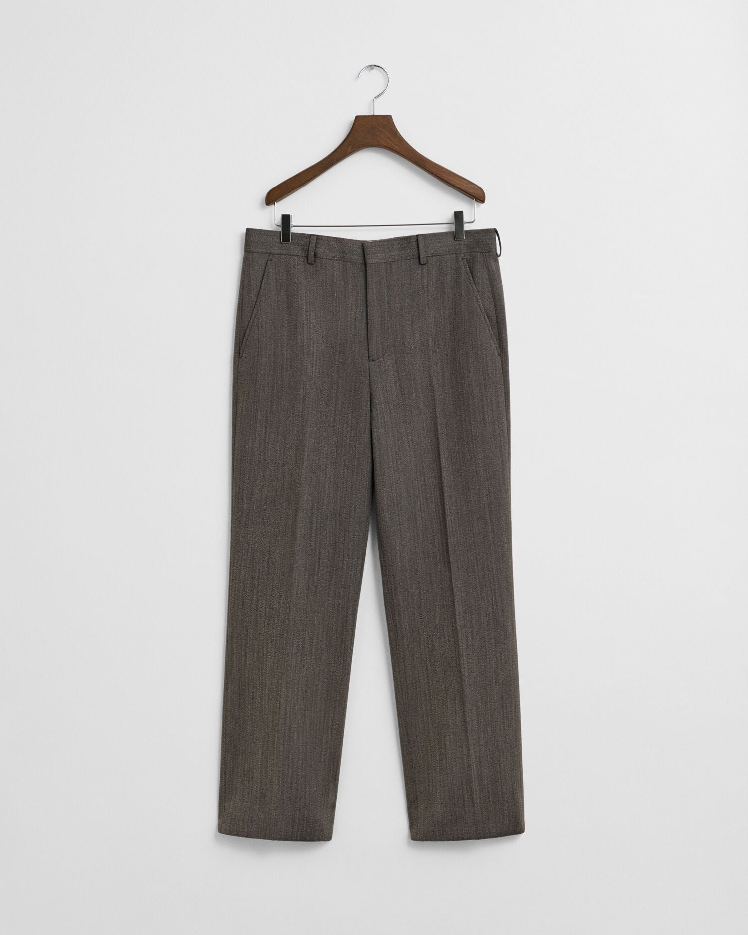 This piece is part of our premium capsule collection: 240 Mulberry Street. The capsule honors our heritage as pioneers of American Sportswear by taking preppy classics and evolving them into new silhouettes made from the finest fabrics. Crafted from Italian wool with natural stretch, these suit pants feature a woven herringbone pattern. Made for a relaxed fit with a mid-rise waist, the straight-legged silhouette features a hook-and-bar closure, front and back press creases and slanted front pockets. These pants are complete with button-through welt pockets at the back and branded imitation horn buttons. Pair with the matching jacket for a stand-out, suited look.