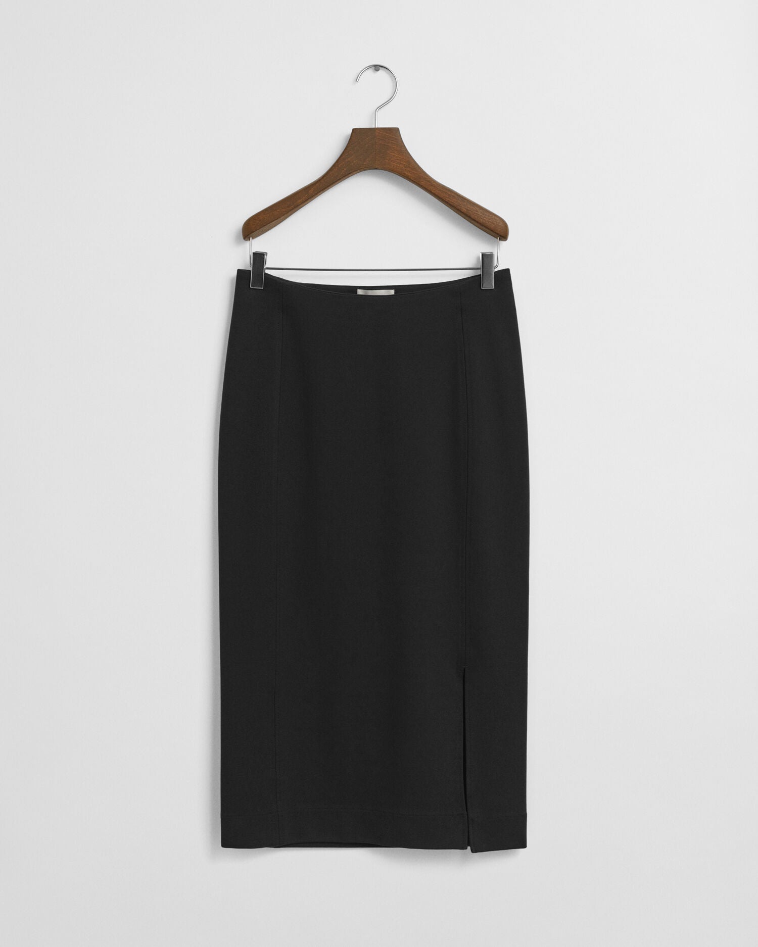 Silhouette is everything with this jersey pencil skirt. Crafted in a Ponte Roma fabric from a viscose blend, this skirt has a soft and sturdy quality to it. It's designed for a slim-fitting pencil shape with a length that falls just below the knees. It features decorative shaping seams at the front and back with saddle stitching and a slit at the front. This skirt is complete with a hidden elasticated waistband.