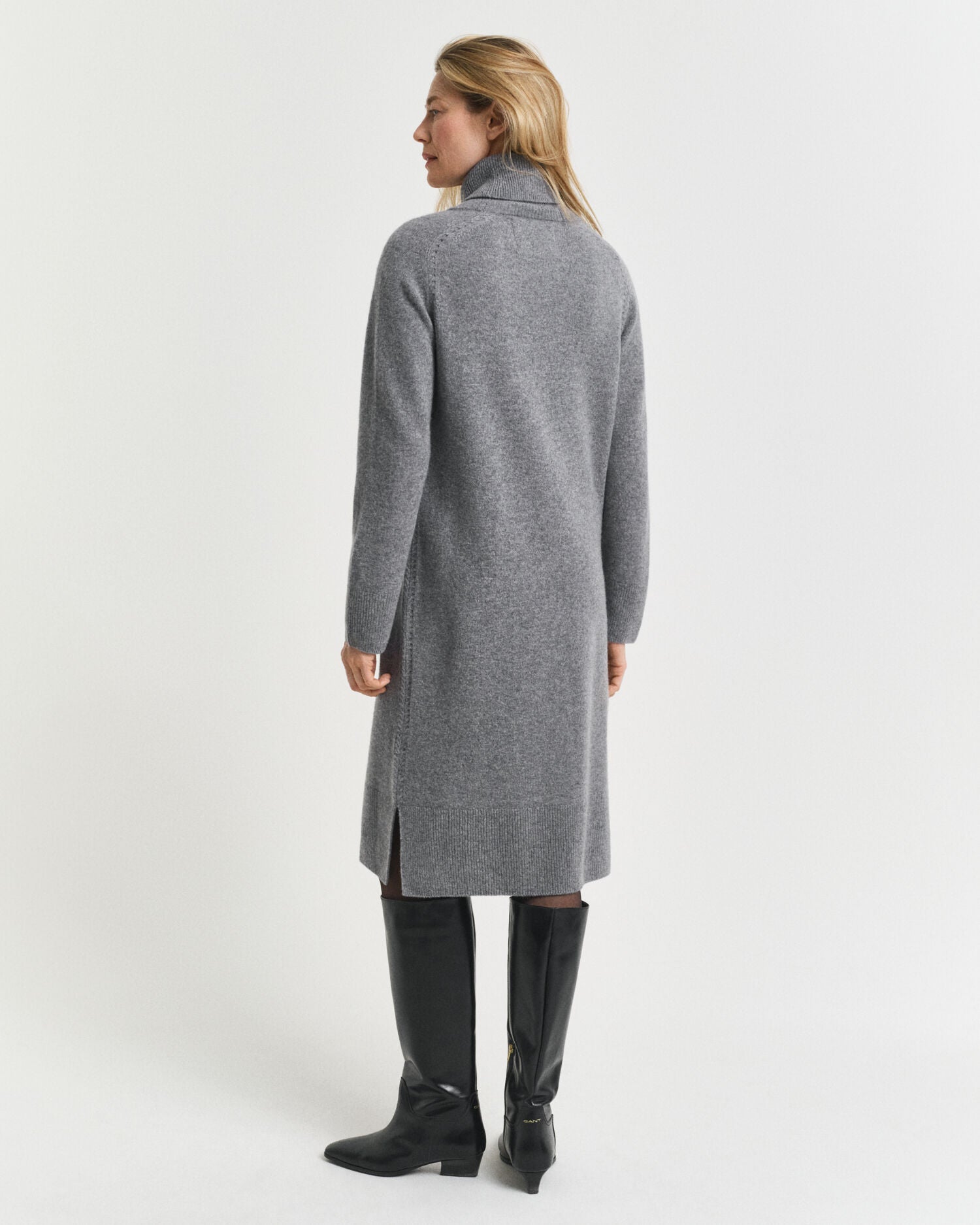 Crafted from super soft blend of Italian lambswool and cashmere, this dress is cut for a relaxed fit and finished just below the knees. The design features a turtleneck, high ribbing at the sleeve cuffs and hem and a logo embroidery at the sleeve. This garment is intended for a relaxed fit. For a closer fit, we recommend sizing down.