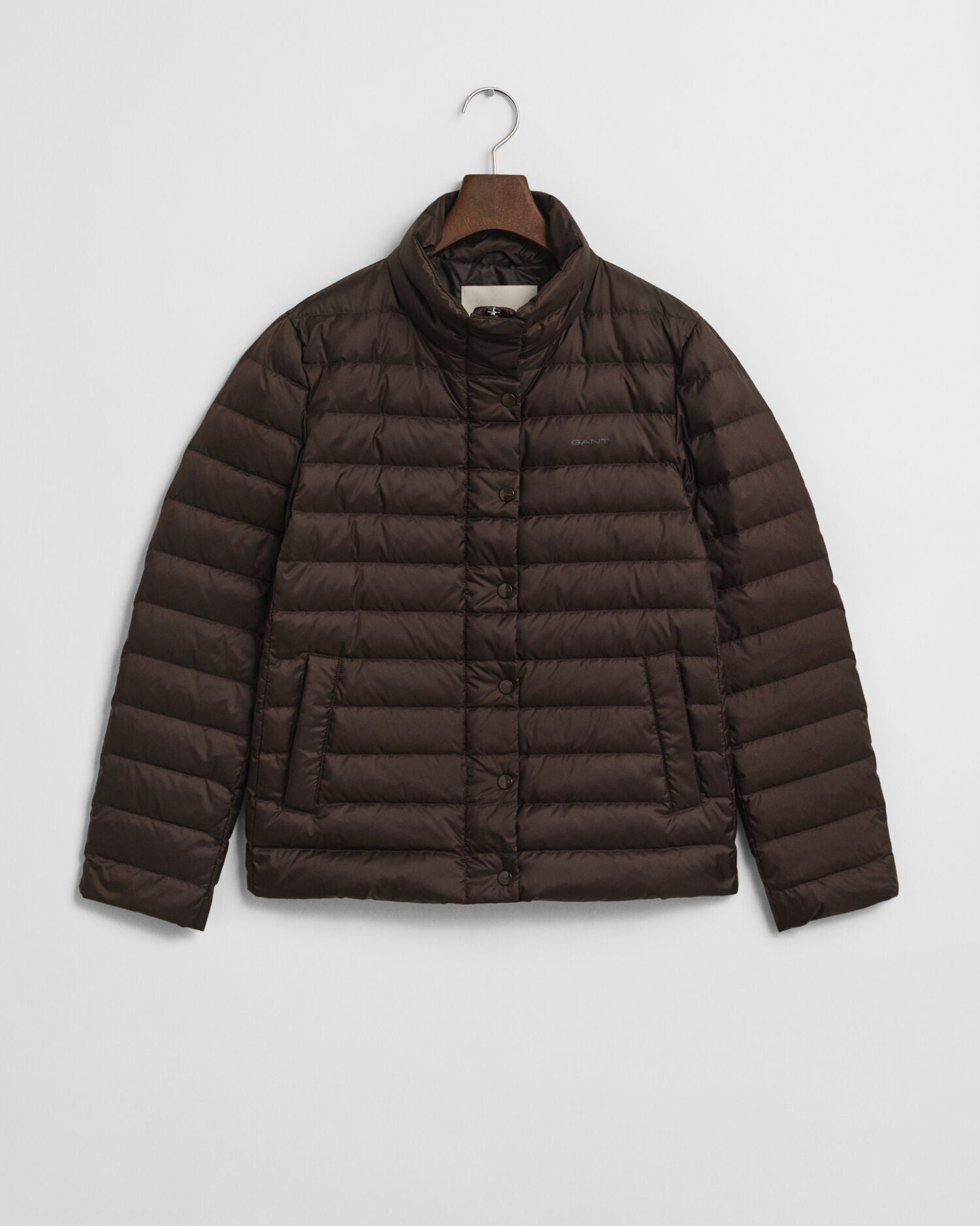 An easy, year-round layering piece with 90% down and 10% feathers, the Light Down Jacket is made from super light and certified recycled polyester with a water-repellent finish. The piece has a regular fit with a straight hem and a slightly shorter length that makes it ideal to be worn alone over shirts or under heavier coats on colder days. A stand collar, lacquered snaps, angled welt pockets, a two-way zipper, and a printed logo at the chest complete the piece. This jacket features a Durable Water Repellent (DWR) treatment which will help to shed water in light weather conditions.