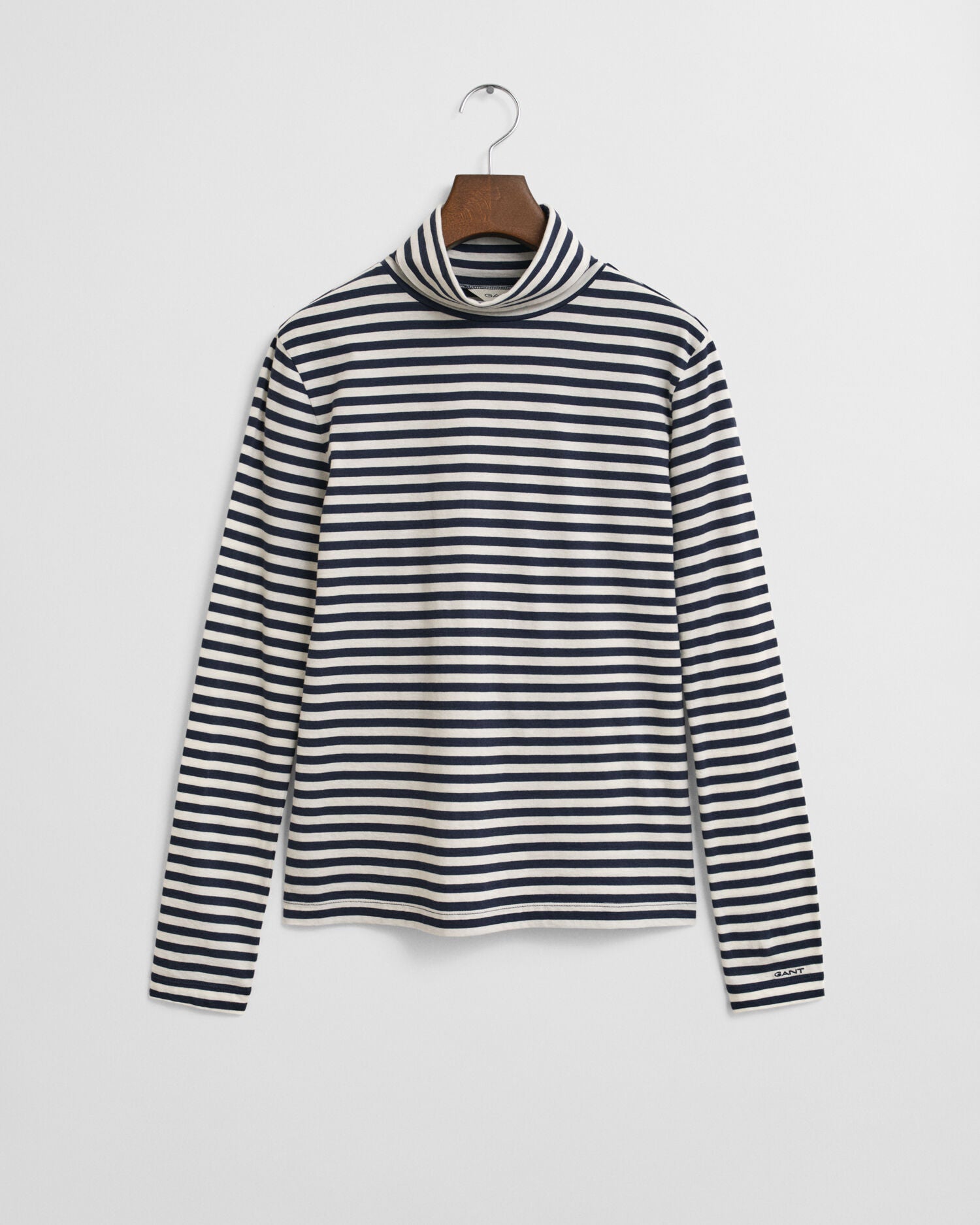 Made from lightweight cotton with a stretchy feel, this turtleneck top is an essential layering piece for the season. Cut for a slim fit, it features an all-over yarn-dyed striped pattern and a tonal logo embroidery above the sleeve cuff.