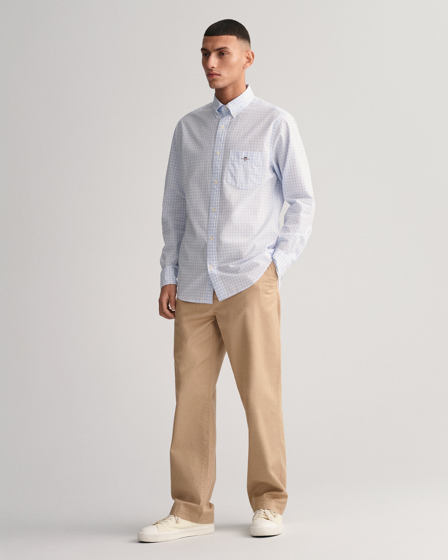 Men's Regular Fit Gingham Poplin Shirt - LIGHT BLUE