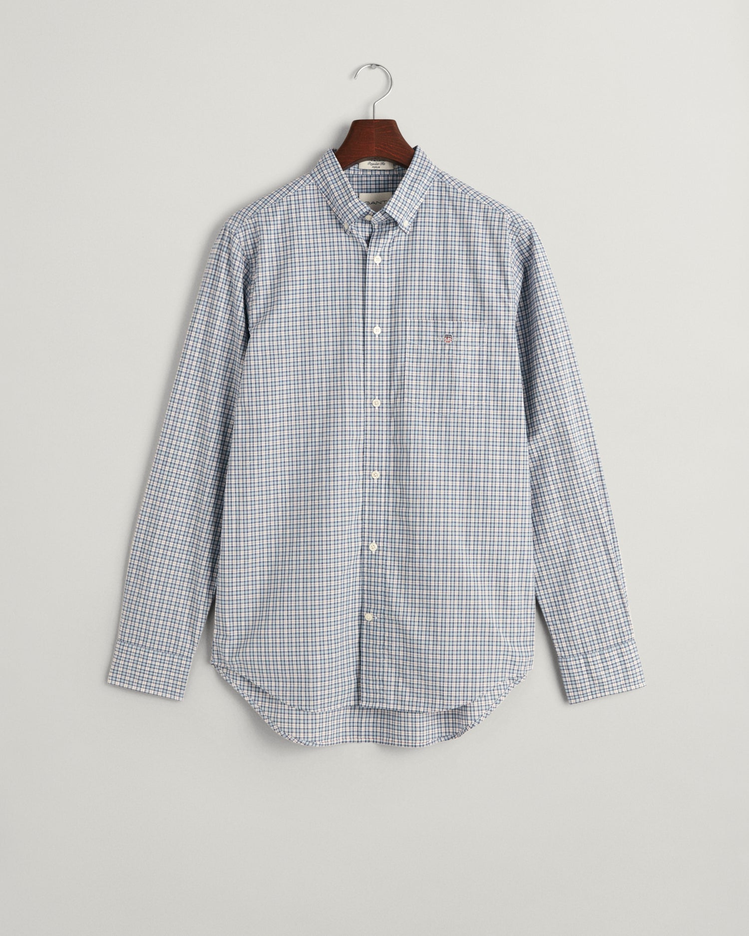 Men's Regular Fit Micro Checked Poplin Shirt - DOVE BLUE