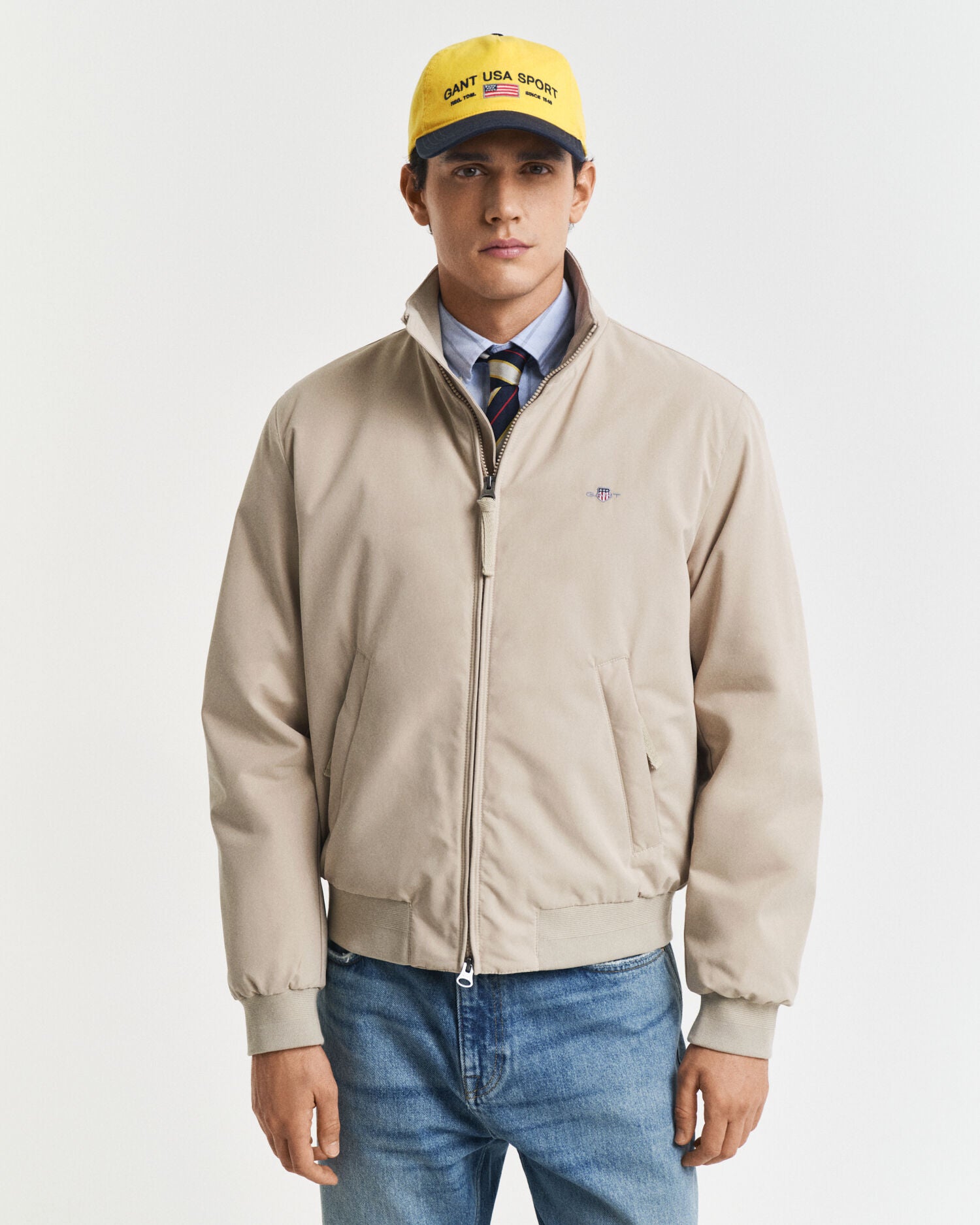 This Padded Hampshire Jacket is a transeasonal outerwear essential. Designed for a regular fit and finishing just above the hips, it's crafted from a recycled polyester-cotton blend and features a water-repellent finish. Fully lined, this jacket has a stand collar with ribbed lining, a front zip closure, side welt pockets, two interior pockets, rib endings, logo embroidery at the chest, and our signature locker loop at the back. This jacket features a Durable Water Repellent (DWR) treatment which will help to shed water in light weather conditions. If you're unexpectedly caught in a downpour, please follow the care instructions closely to restore the performance and prolong the life of this garment.