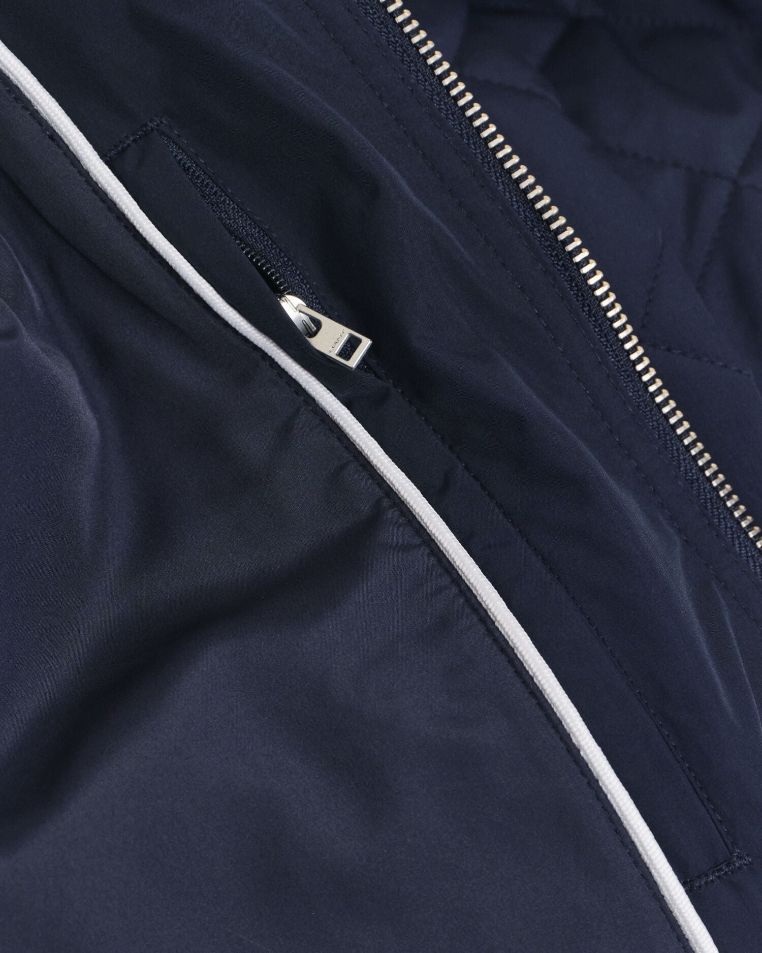 Crafted in a diamond quilting structure, this Quilted Windcheater Jacket features recycled polyester padding and is treated with a water-repellent finish. Design details include a one-way zipper at the front, snap buttons at the collar, slanted welt side pockets and an elasticated hem and cuff with a press button adjuster. This windcheater features a Durable Water Repellent (DWR) treatment which will help to shed water in light weather conditions.
