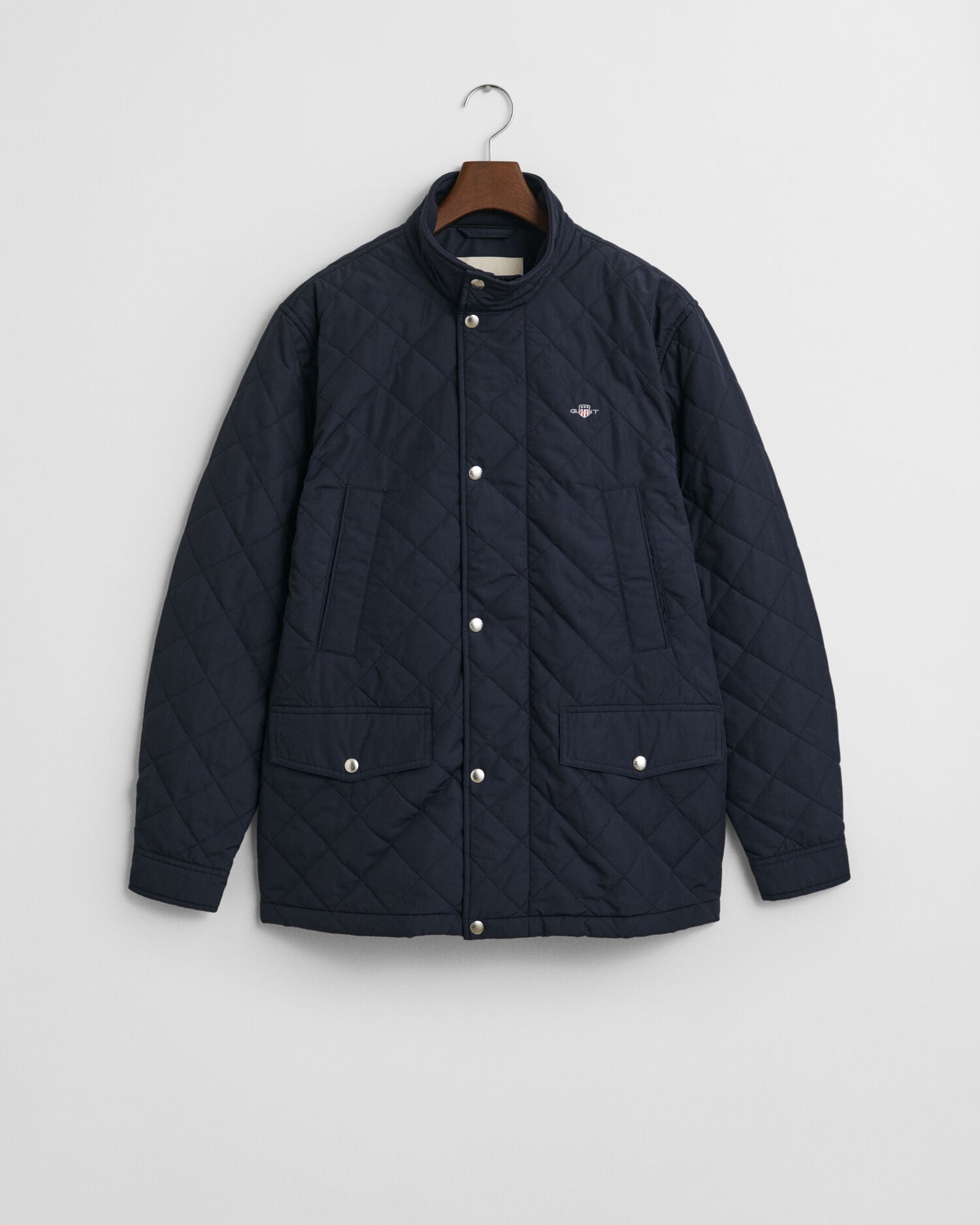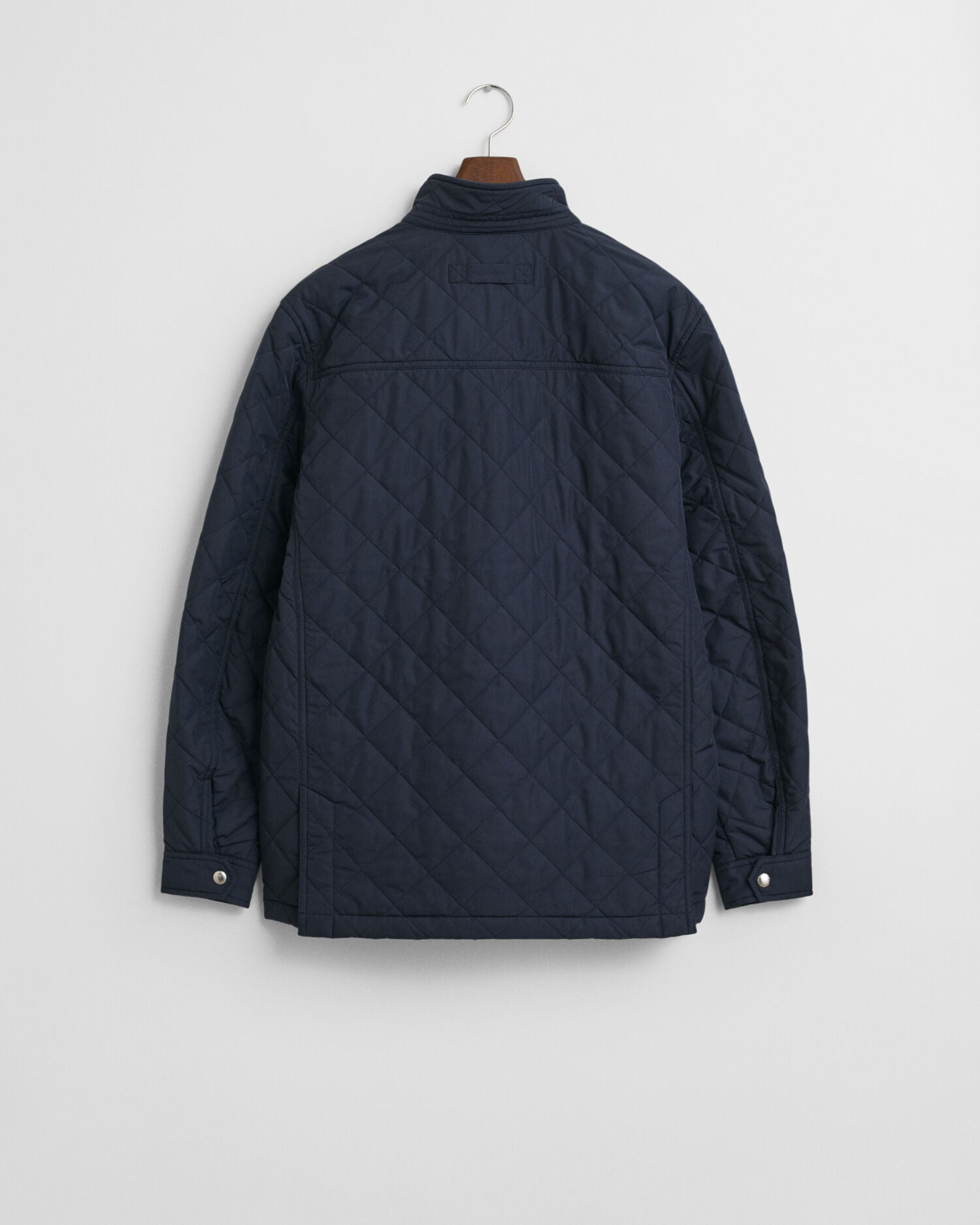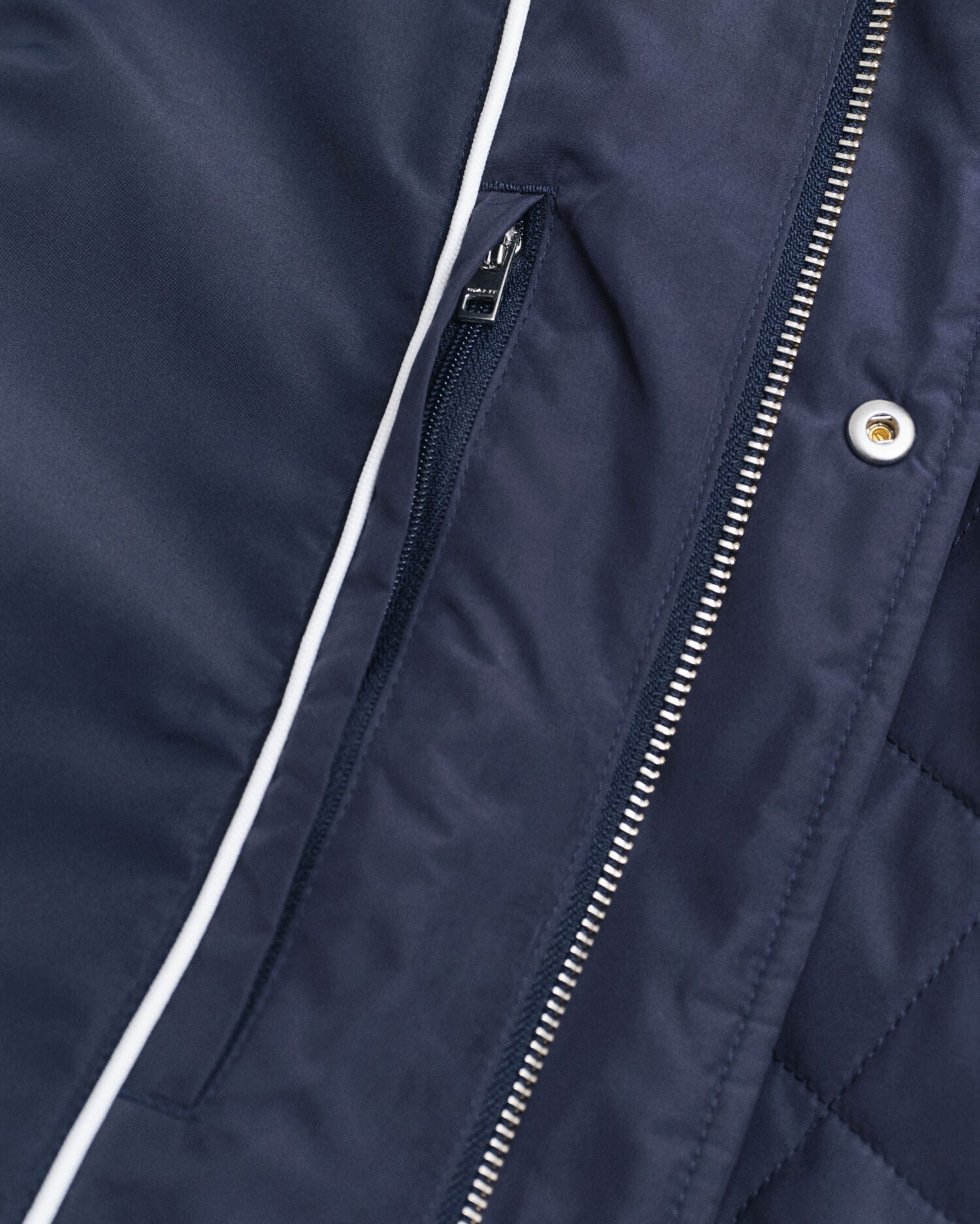 Crafted in a diamond quilting structure, this windcheater jacket is made entirely from recycled polyester and treated with a water-repellent finish. Cut for a mid-length and a regular fit, it features a stand collar and center front placket with press buttons and a hidden zip closure underneath. Other design elements include side hand-warming pockets, lower flap packets and two interior pockets. This jacket is complete with branded embroidery at the chest and at the back locker loop. This jacket features a Durable Water Repellent (DWR) treatment which will help to shed water in light weather conditions.