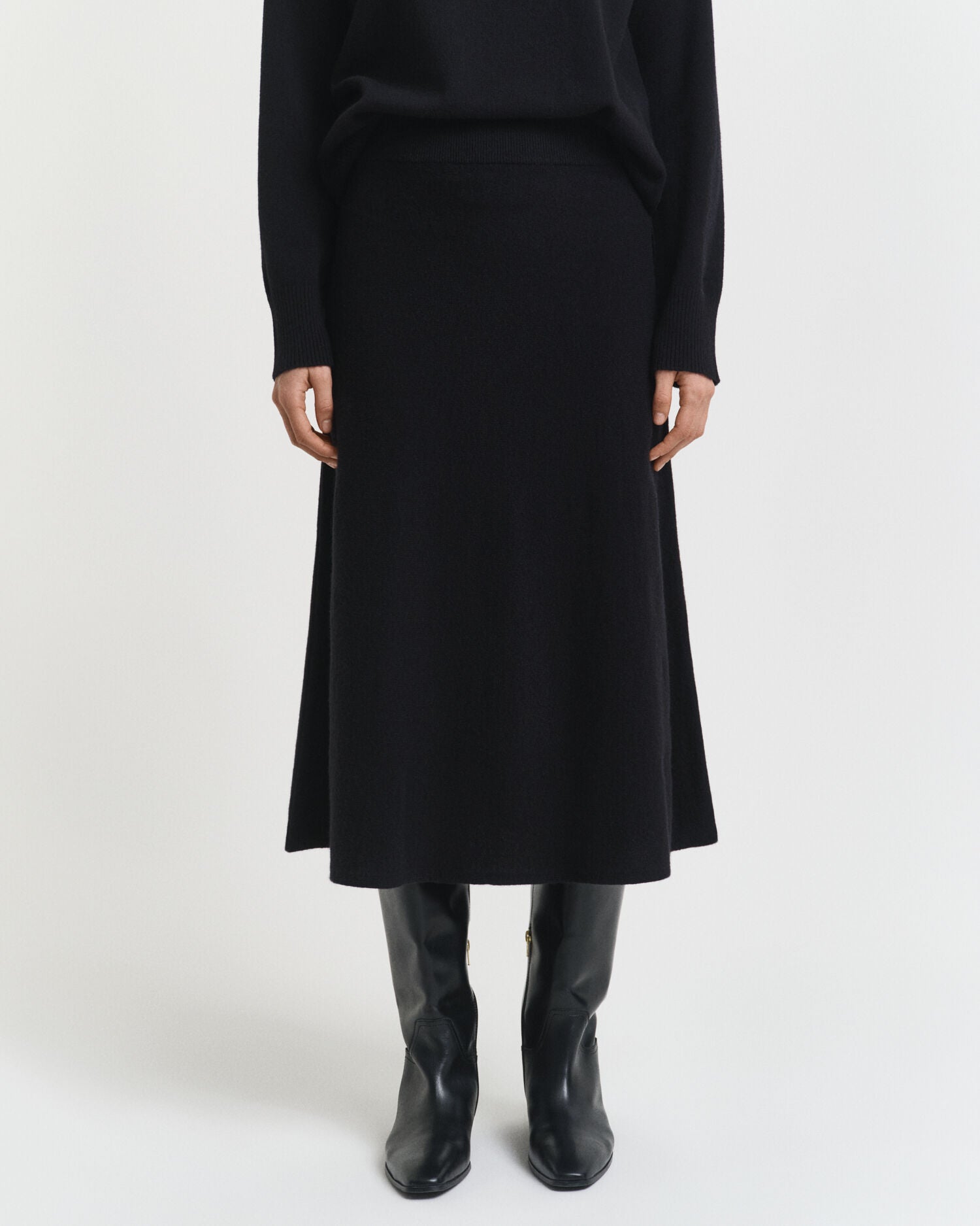 An essential for styling in the colder months, this skirt is fashioned from a superfine Italian lambswool and cut for a regular fit. Crafted with an A-line silhouette, the jersey knit design finishes at the knees and is detailed with a ribbed waistband.