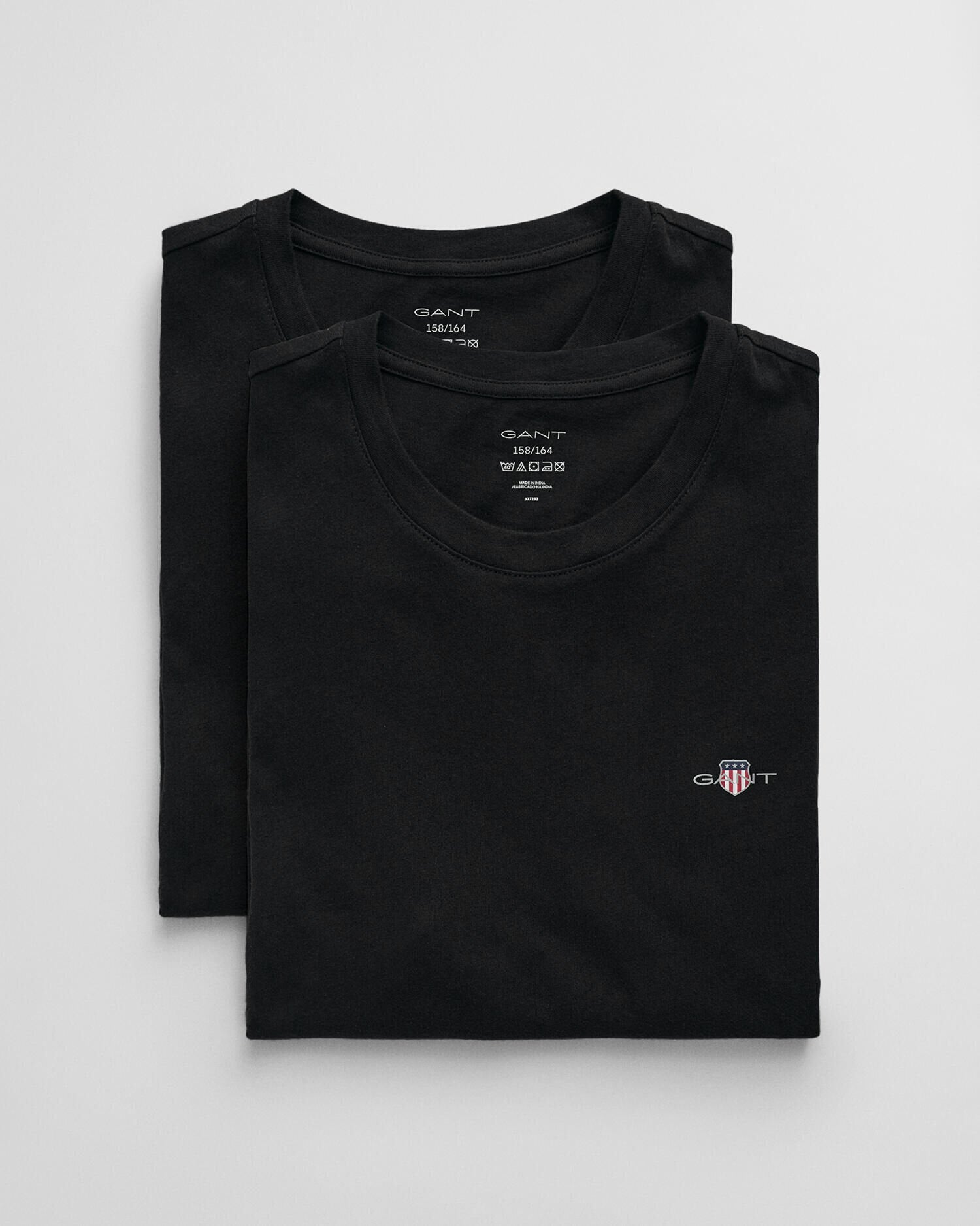 A two-pack of crew neck T-shirts that are made to live in. These T-shirts for teens are crafted in a soft cotton jersey and detailed with a small-scale shield graphic printed at the chest.