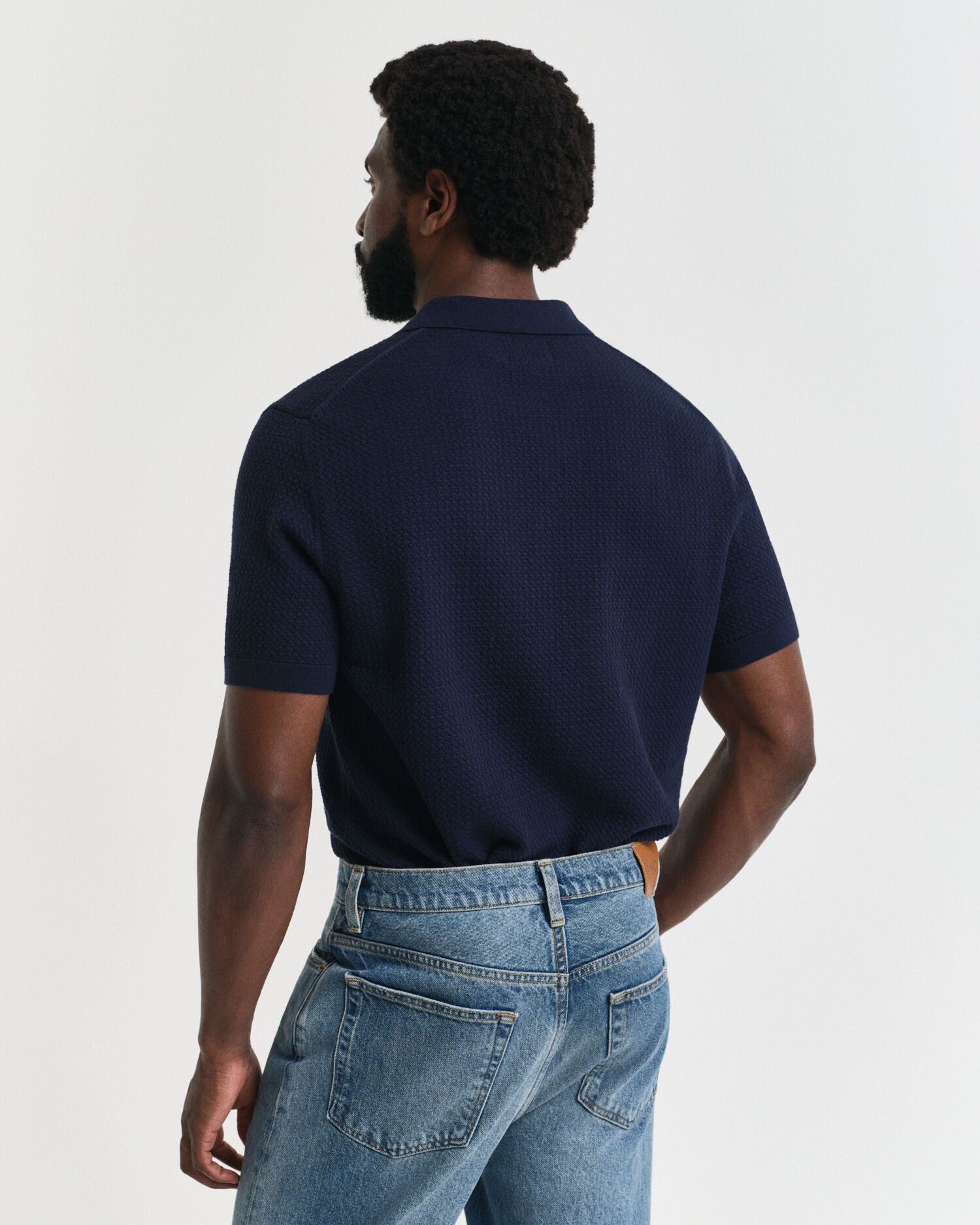 Made from cotton, this polo shirt is designed in a small knitted texture. Cut for a regular fit, it features a classic polo collar, rib endings and corozo buttons. This polo is detailed with our iconic shield graphic embroidered at the chest.