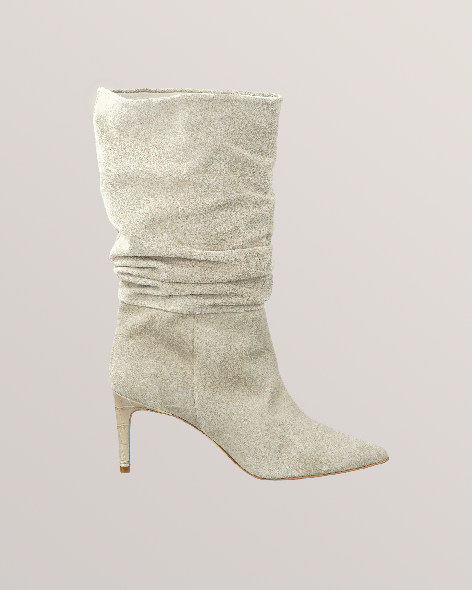 This eye-cathing slouchy boot strikes with casualness und elegance at the same time. The sharp toe and heel ensure feminity. The upper material is made of high-quality suede. With leather lining and insole. By purchasing this product you support responsible leather manufacturing by the Leather Working Group.