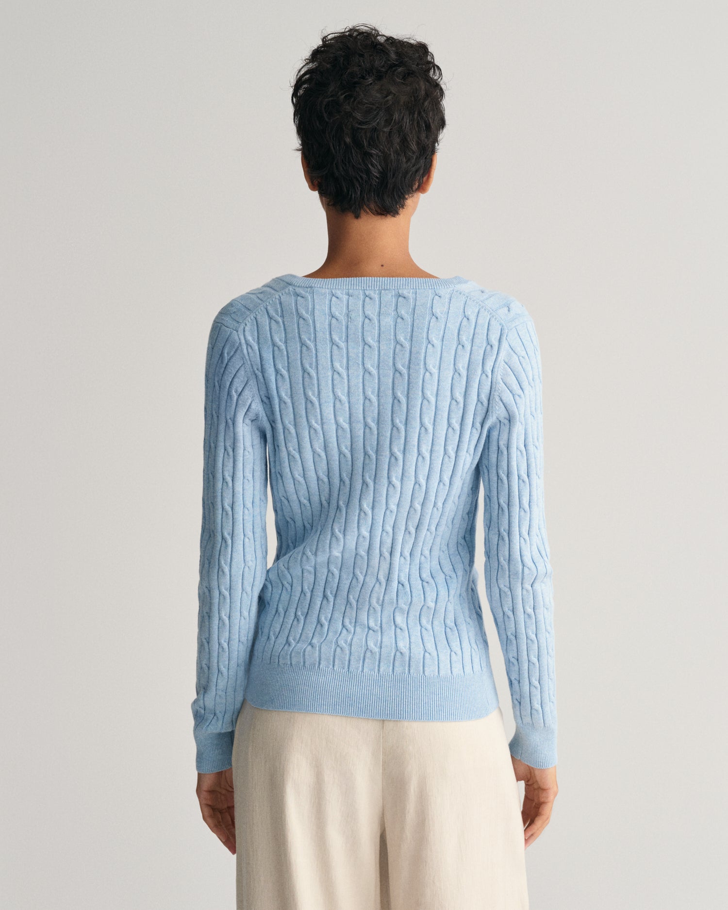 Women's Stretch Cotton Cable Knit V-Neck Sweater - DOVE BLUE