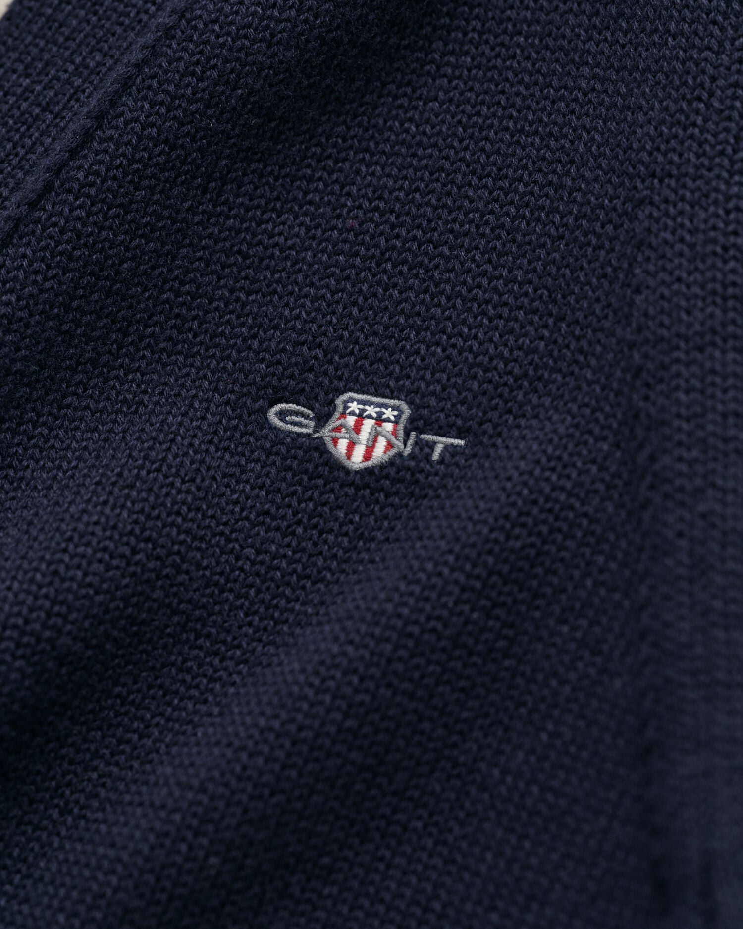 Crafted from soft organic cotton, this cardigan is a staple wardrobe piece. Made with a regular fit, it features a V-neck front, ribbed detailing at the hem and sleeve cuffs and a tonal graphic embroidery at the chest.
