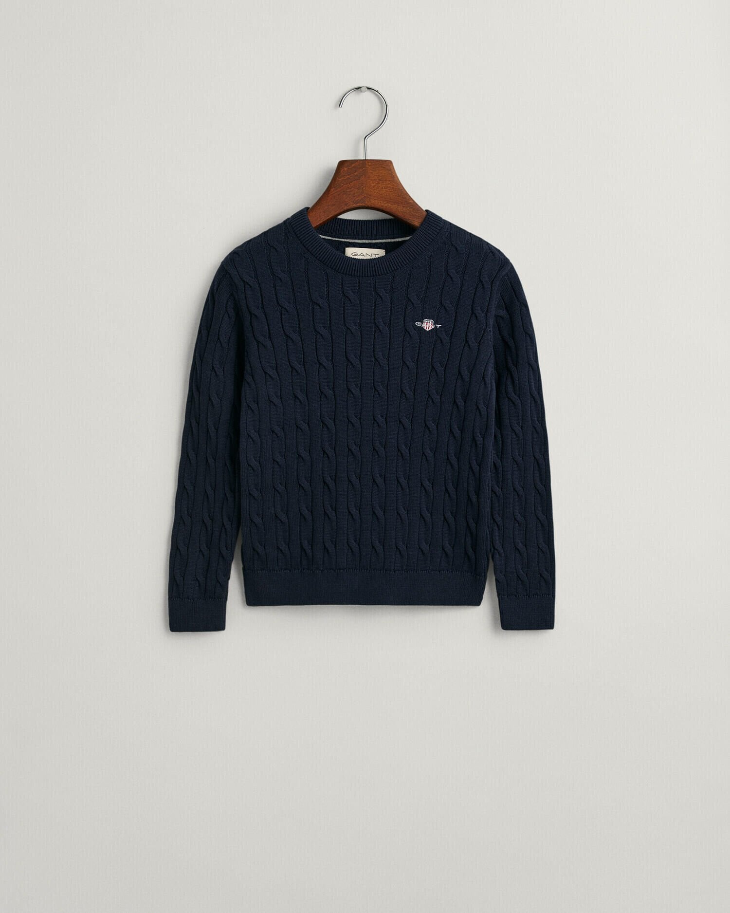 Cable knit sweaters never go out of style. This 100% cotton version is lightweight, super comfortable and perfect for layering. With all-over cabling, a crew neck and a small-scale shield graphic embroidered at the chest, this kids' smart-casual piece can be dressed up or down depending on the occasion.