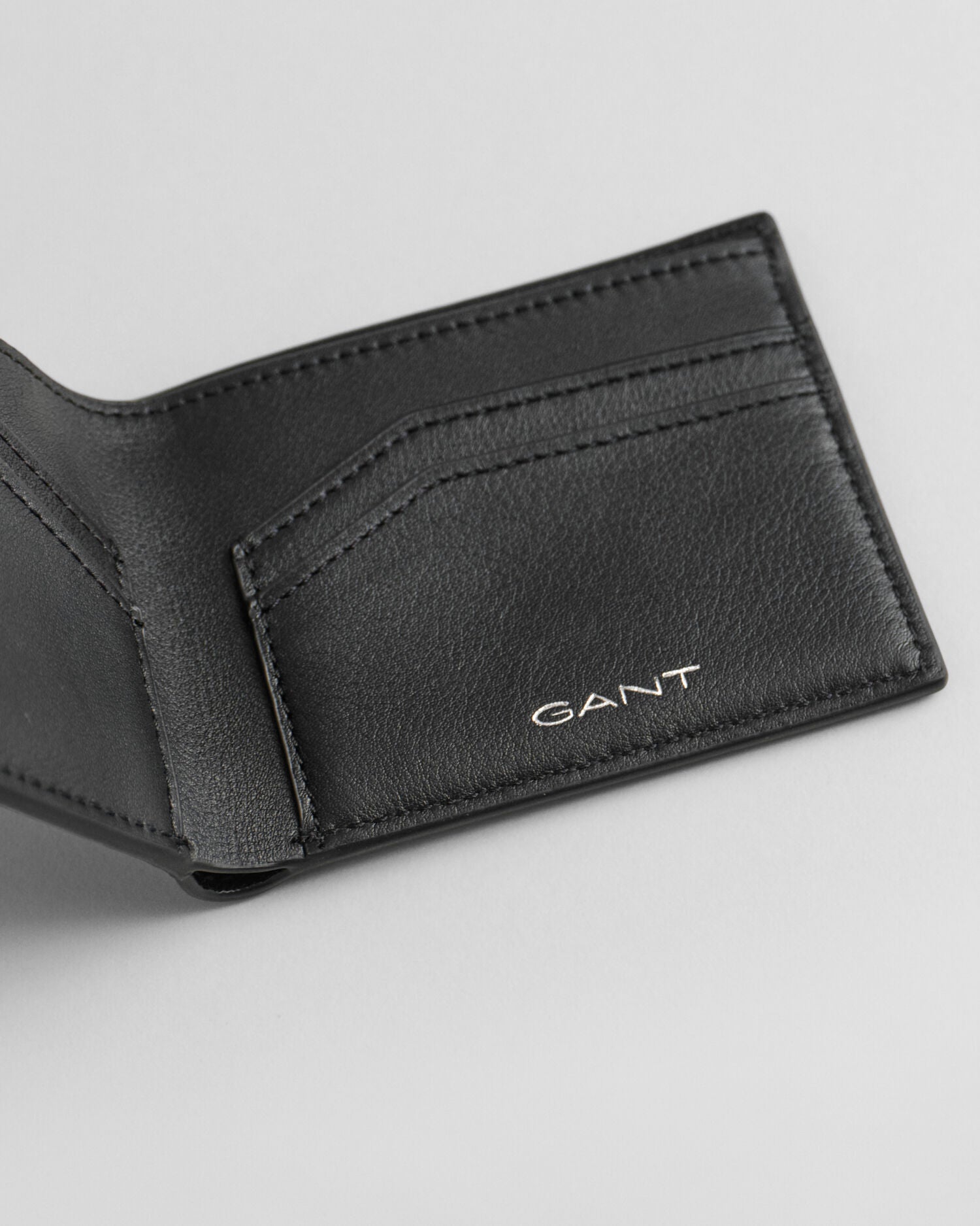 A premium, bi-fold wallet crafted in 100% leather. This design features both coin and card compartments as well as a embossed silver foil logo on the inside and front of the wallet.