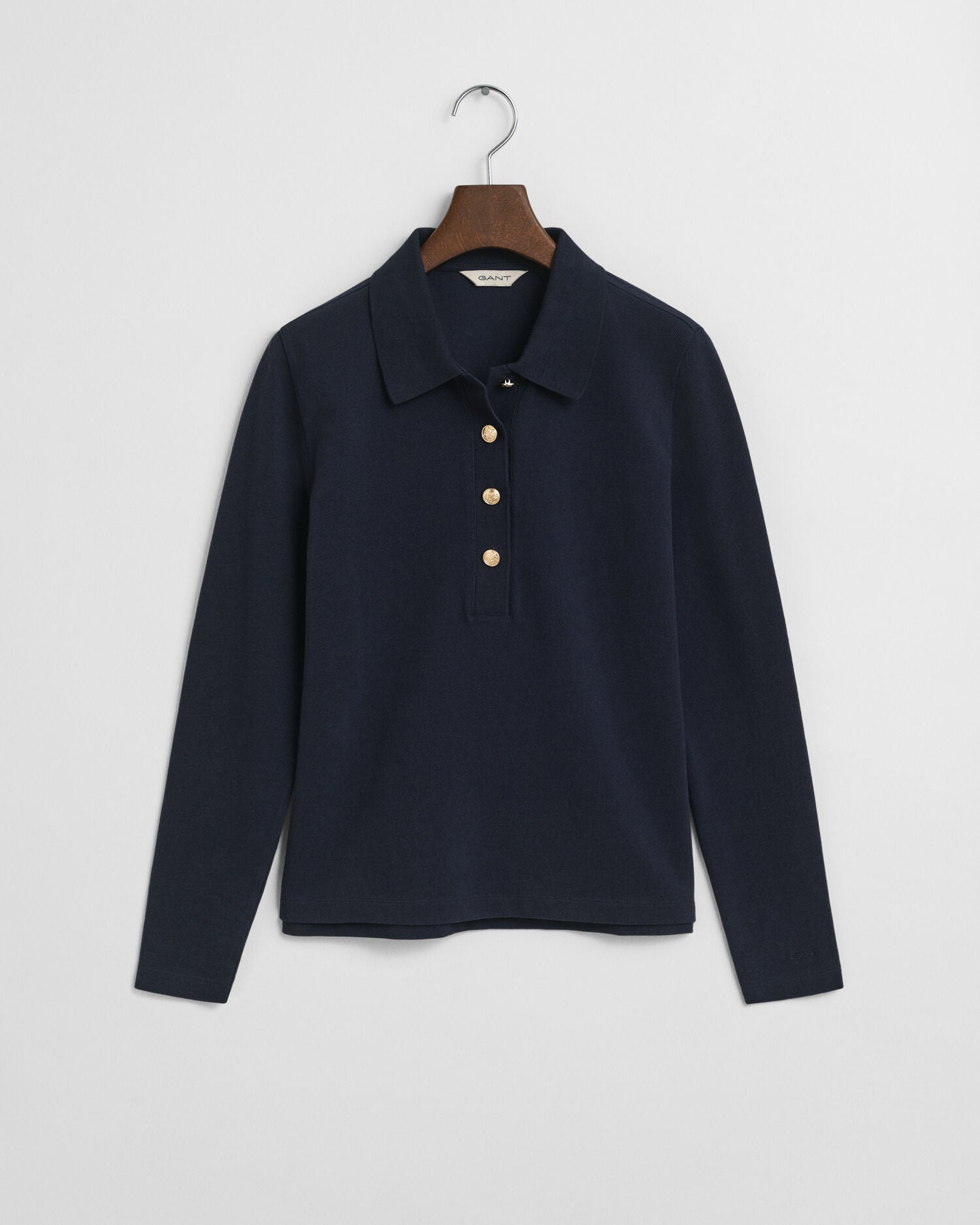 Crafted with a small piquestructure, this long-sleeved polo shirt is cut for a regular fit and features a classic polo collar. The design is detailed with branded gold-toned shank buttons, side slits and a logo embroidered at the sleeve.