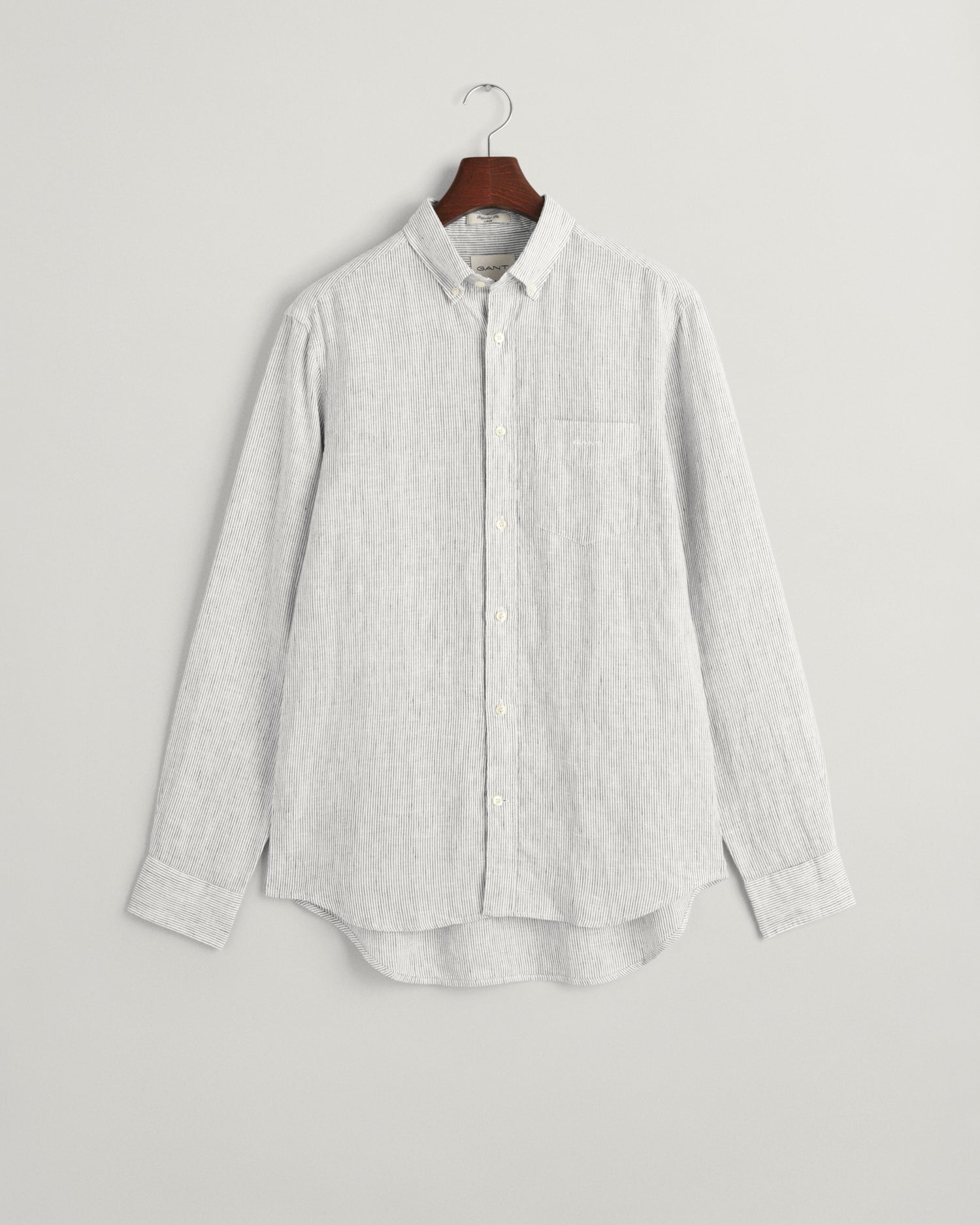 Chemise rayée en lin coupe classique pour homme - BLANC