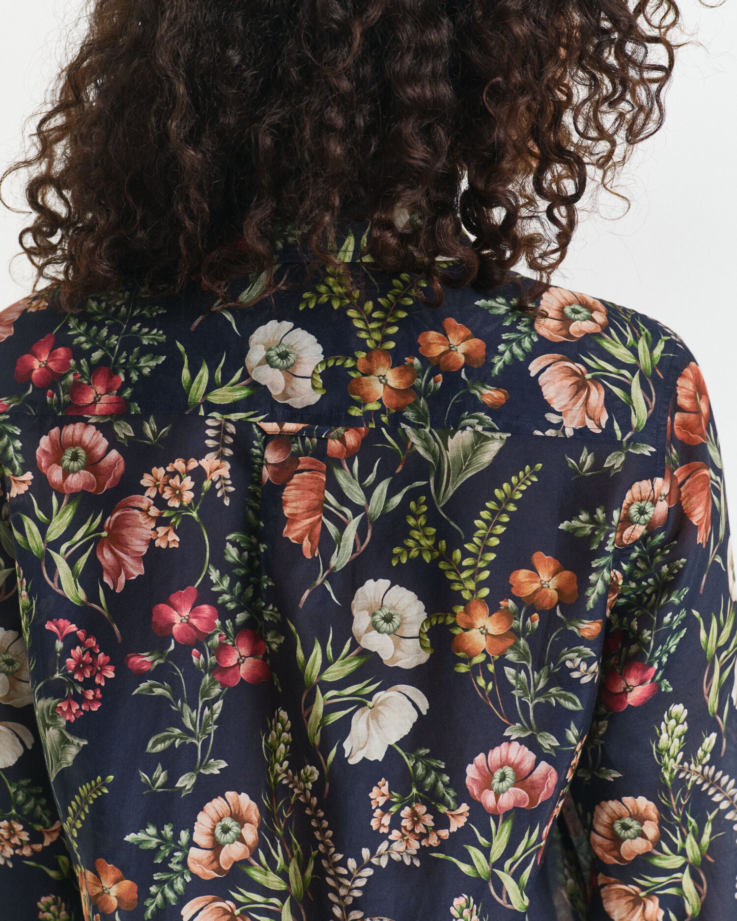 Crafted from a premium cotton-silk blend, this shirt features a hand-painted print, inspired by the wild florals found in North America. Cut for a regular fit, it has a point collar, curved hem, recycled polyester buttons and a box pleat with our signature locker loop at the back.