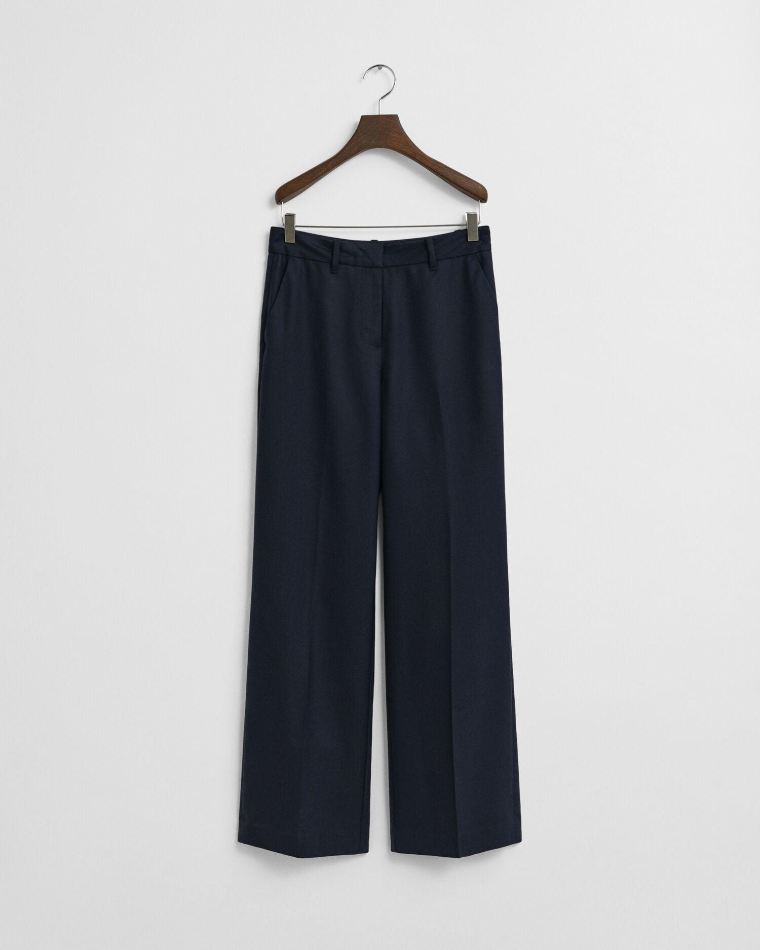 The perfect pair of pants for your preppy wardrobe, this design is crafted from a fine wool-viscose blend with a prominent twill structure. Cut for a regular fit, the pants feature a mid-rise waist and straight legged silhouette. Designed with front and back creases, the pants are further detailed with slanted front pockets, back welt pockets, and a zipper with hook-and-bar closure at the front.