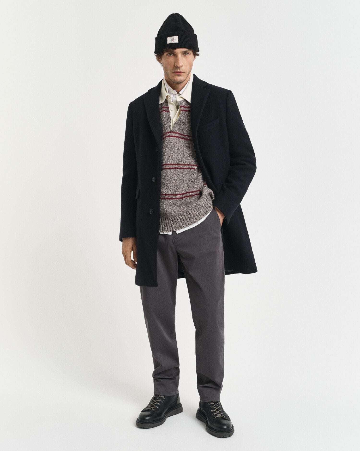 Crafted from organic cotton twill with a hint of stretch, these chinos have a slim mid-rise waist and regular fit over the knee and through the leg. They are detailed with buttoned back pockets and a logo on the right back pocket.