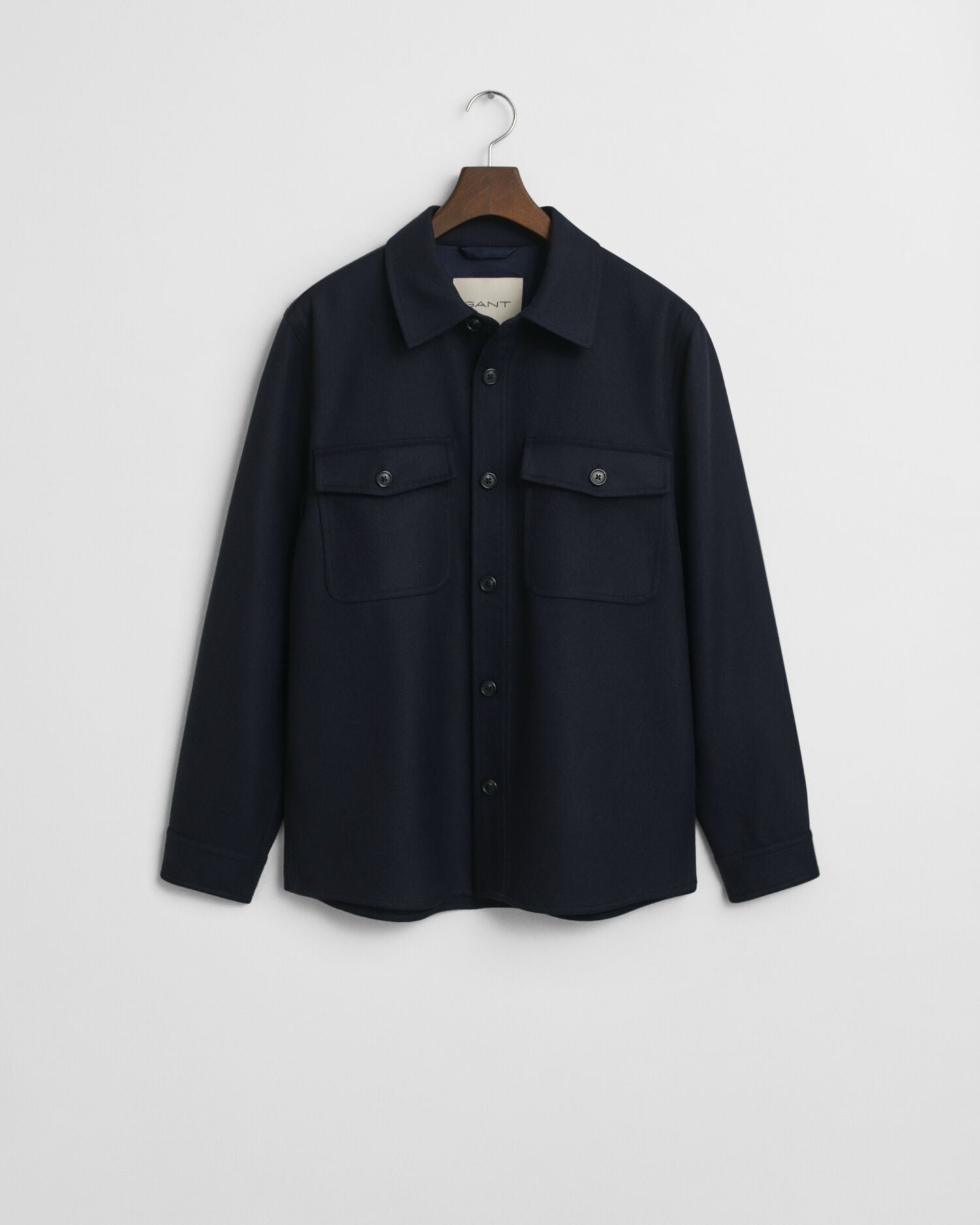 Crafted from a premium wool blend with a brushed flannel construction, this overshirt is cut for a regular fit and features a point collar. The design is further detailed with buttoned flap pockets at the chest and imitation horn buttons.