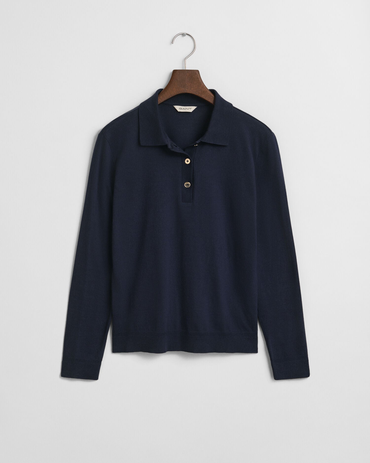 This polo shirt is designed in a luxuriously single jersey fabrication from a soft cotton-modal blend. Cut for a regular fit, it features long sleeves and a flat knit polo collar adorned with branded gold-toned buttons. Other features include a self-edge knit detailing at the beginning of the hem and sleeves, plus a logo embroidered at the left side's cuff.