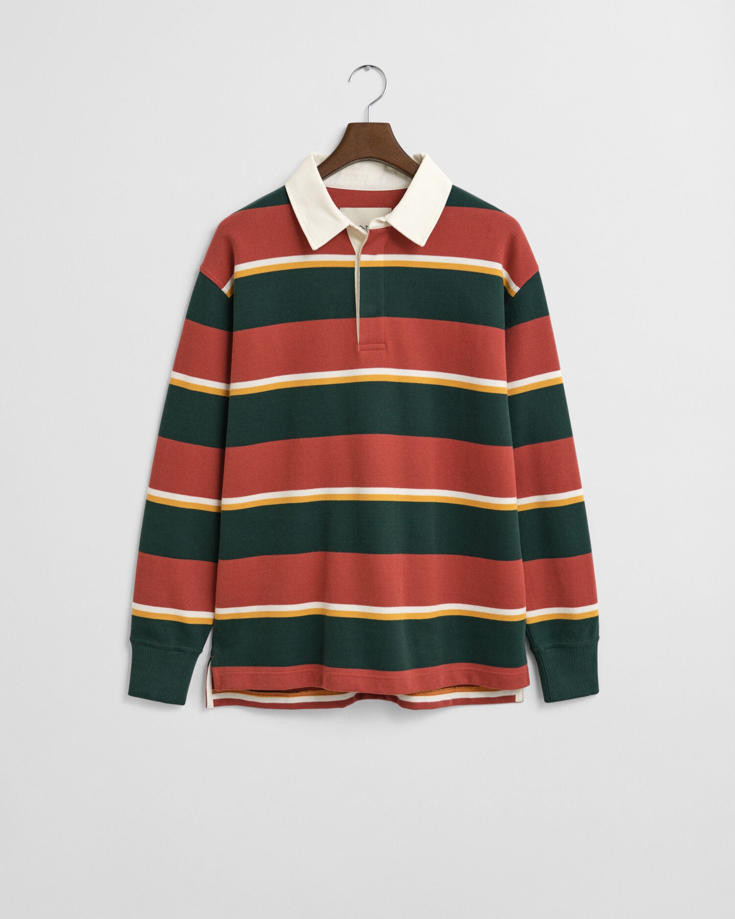 This iconic heavy rugger is cut for a relaxed fit and crafted from a cotton-rich blend. Garment-washed for a softer hand-feel, this rugger is patterned with yarn-dyed stripes. It is detailed with a twill collar, a buttoned placket, ribbed cuffs and a locker loop at the back embroidered with our logo. This rugger features a slightly longer hem at the back than at the front. This garment is intended for a relaxed fit. For a closer fit, we recommend sizing down.