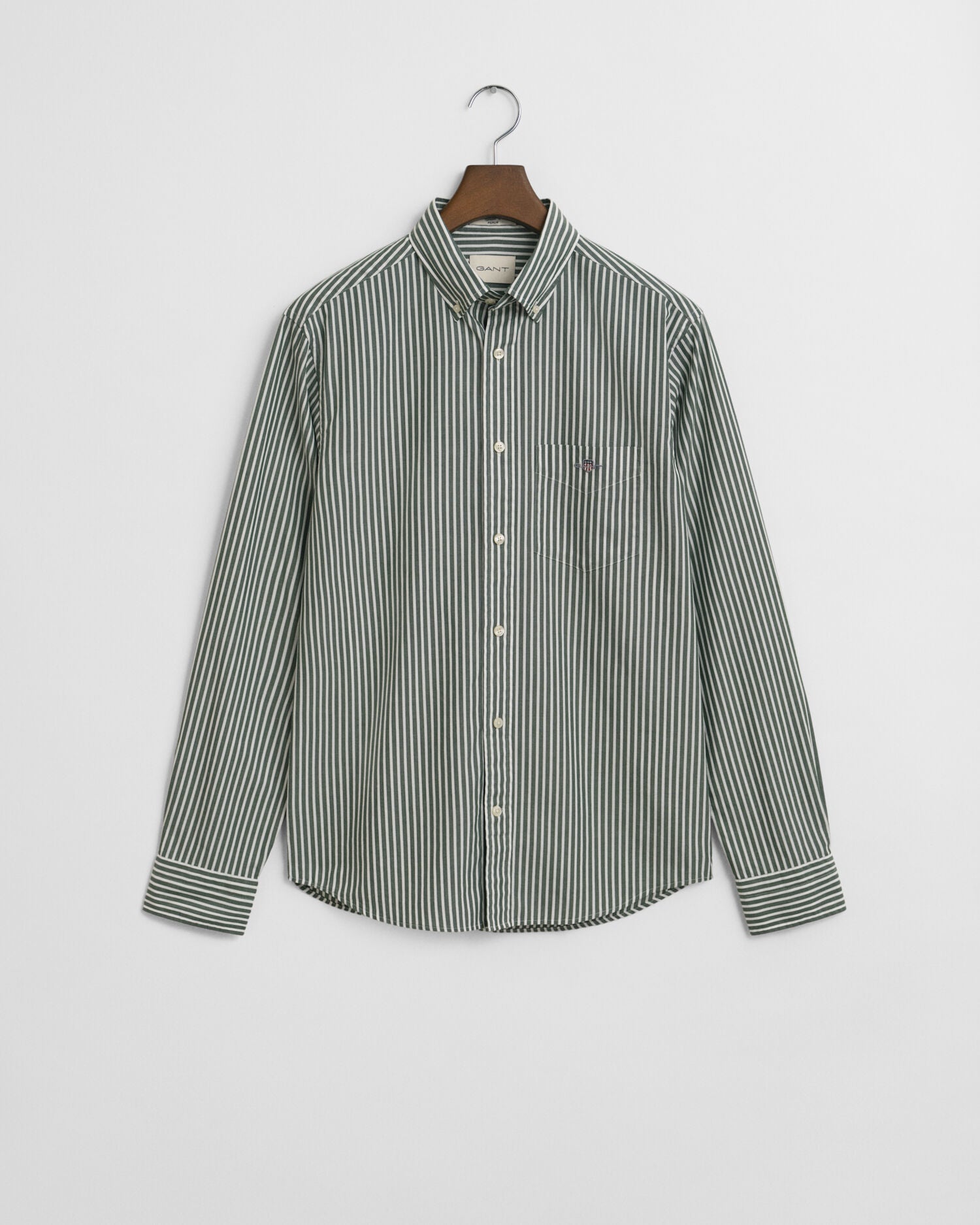Crafted in a durable cotton poplin, this classic shirt is essential to any preppy wardrobe. Designed with yarn-dyed stripes throughout the garment, this shirt is cut for a regular fit and features a button-down collar, curved hem and a box pleat with our signature locker loop at the back. It is accented with an '80s-inspired shield graphic embroidered at the chest pocket.