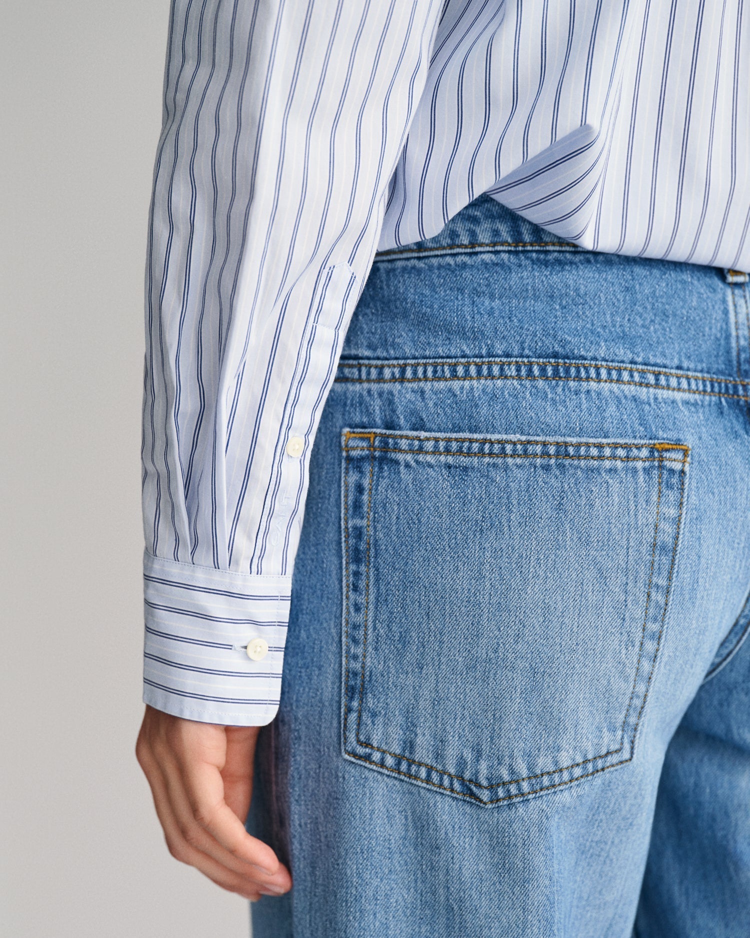 Women's Relaxed Fit Striped Poplin Shirt - COLLEGE BLUE